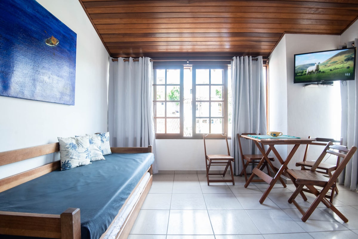 🏡 Your Getaway 80m from Geribá Beach (just 3 minutes walk from the sand) ✨ Comfort meets convenience in one of Búzios' best locations! Amenities: - Powerful AC + 2 fans - Queen bed + sofa bed in living room - Smart TV with SKY/IPTV + Apple TV in bedroom - Blazing-fast 500mb Wi-Fi (workstation included) - Refreshing pool - Private BBQ area with outdoor space - Fully equipped kitchen - Prime location - close to everything! Comfortably fits 4 people. ✨