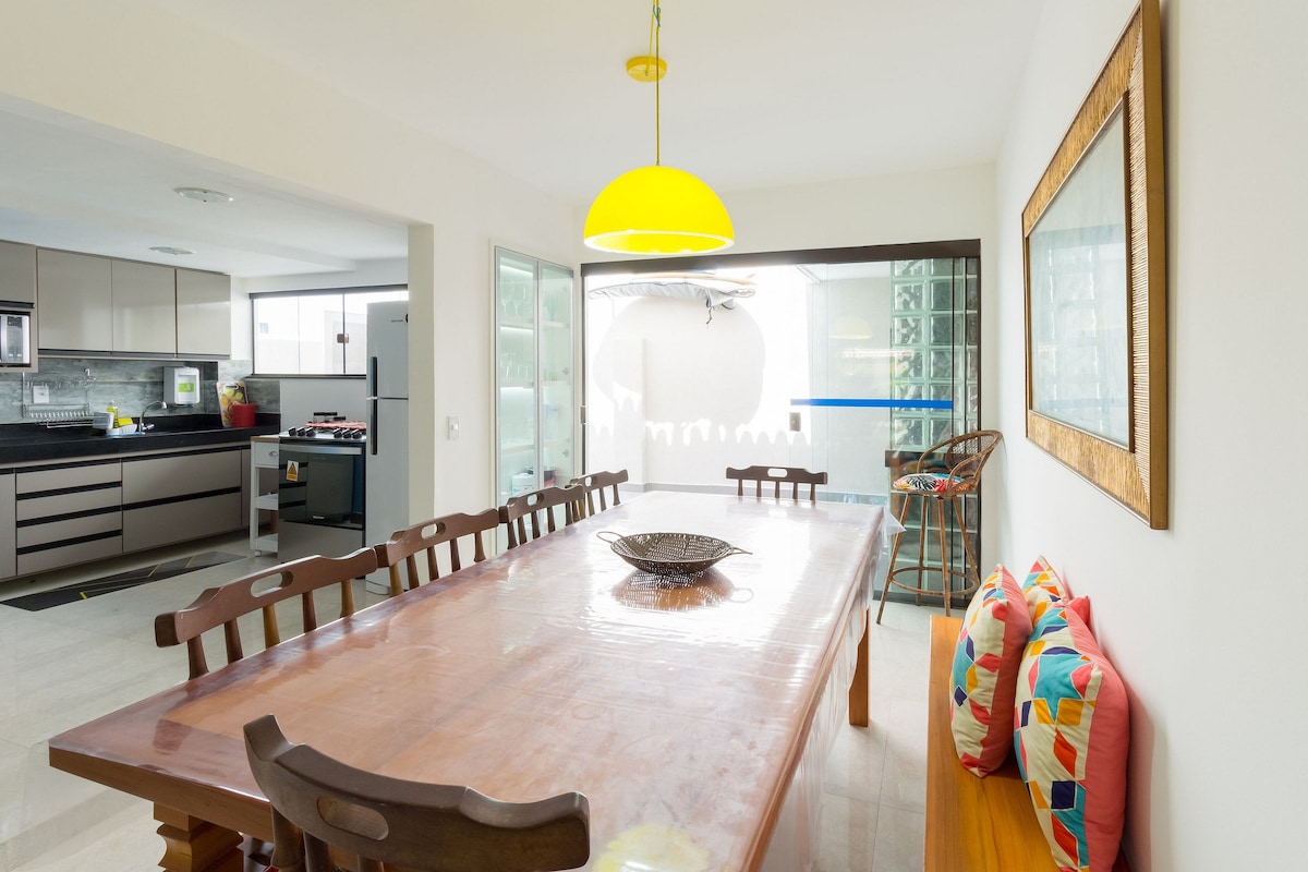 Desfrute do conforto em uma típica casa de praia, situada em condomínio exclusivo a poucos metros do canto esquerdo de Geribá e da praia da Ferradurinha. É ideal para o descanso entre família e/ou amigos. A casa conta com internet, espaço de trabalho, área gourmet com churrasqueira, duas vagas de estacionamento e uma confortável varanda na entrada, repleta de sombra e verde. Piscina compartilhada do condomínio. A combinação perfeita de comodidade e tranquilidade para suas férias em Búzios!