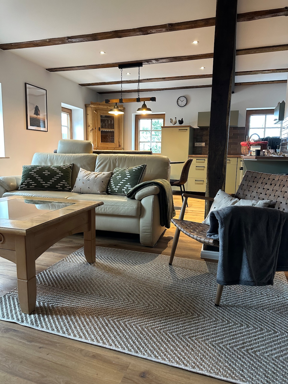Unser im Juni 2023 neu ausgestattetes Ferienhaus auf dem Land bietet euch viel Platz im stilvollen Design. Entspannt euch in der Sauna, kocht gemeinsam in der hochwertigen Küche und erfreut euch an dem tollen Ausblick ins Grüne aus nahezu jedem Raum. Im Studio könnt ihr euch sportlich betätigen oder einfach entspannen. Auf 250 qm findet ihr alles was das Urlaubsherz begehrt - fühlt euch wie zuhause.