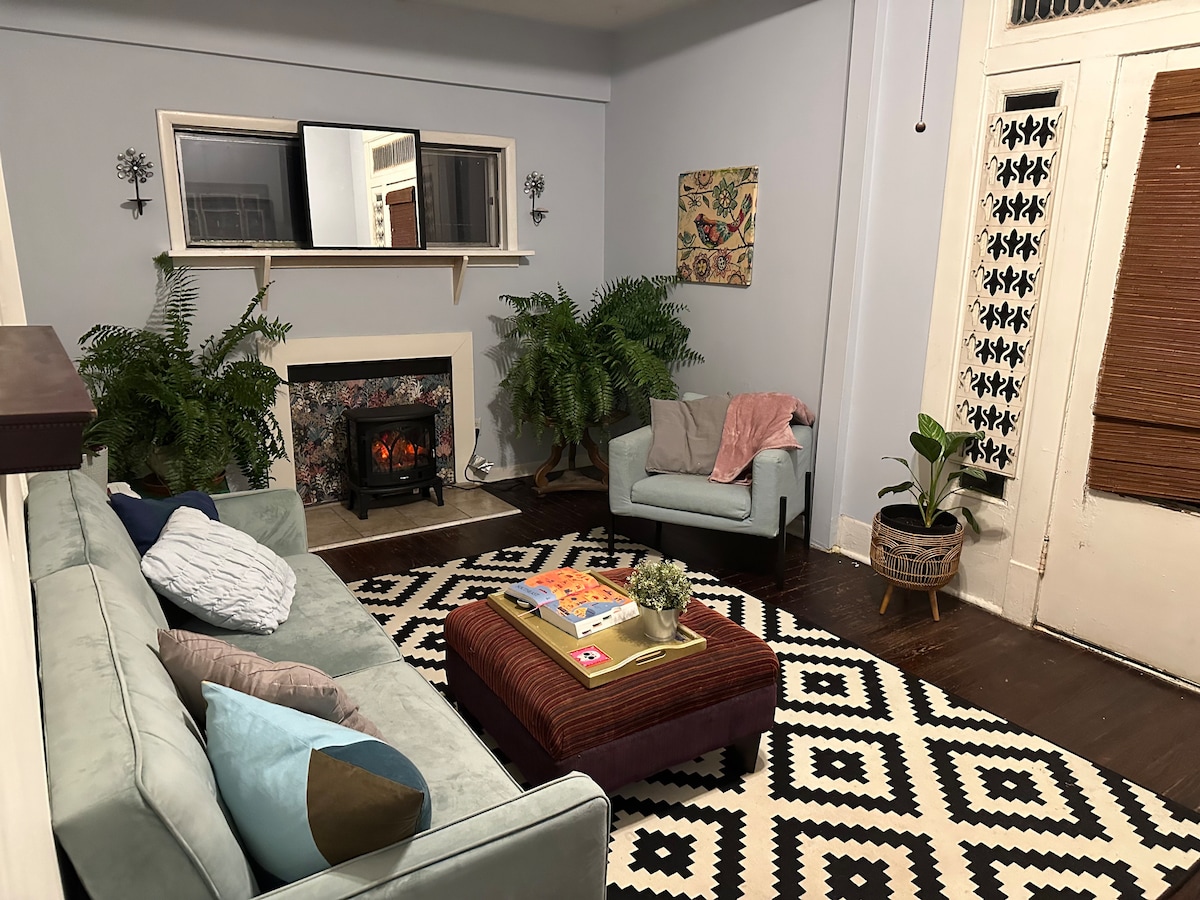 Immerse yourself in the Soul of Memphis in our centrally-located 1907 Arts & Crafts Carriage house. This luxury tiny home was taken to the studs and completely redone with historic preservation and architectural design at the heartbeat of the project. Nestled in the Historic Annesdale Mansion Preservation District, we're the ideal space for a small family, a couple's getaway, or a traveling nurse. State-of-the-art home theater, 24' cathedral ceilings, gated parking under carport & full kitchen!