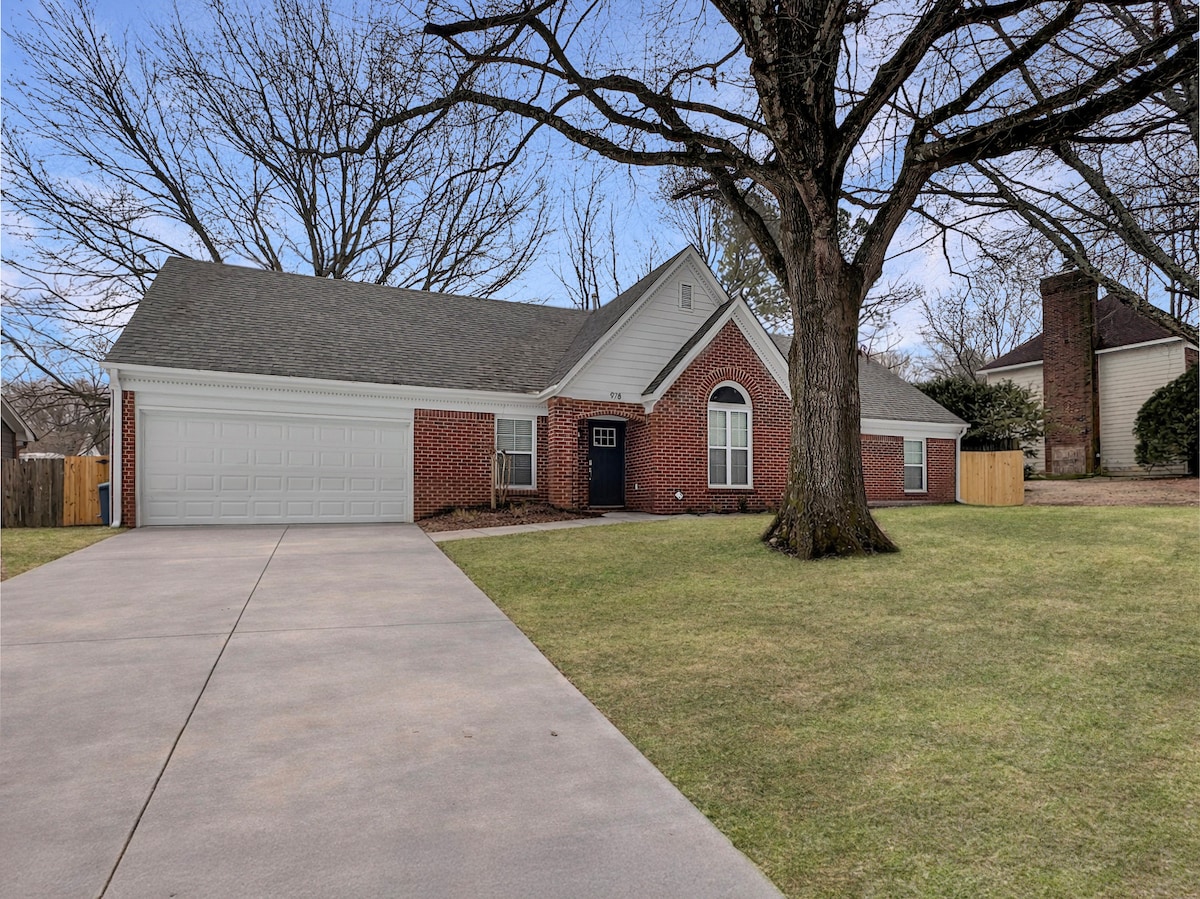 "Welcome to our cozy and spacious 4 bedroom home that sleeps up to 8 guests. Nestled in a charming neighborhood, it offers the perfect escape from the hustle & bustle of the city. Enjoy beautiful weather in the enclosed patio, maximum relaxation on our decks, & fishing at the pond just a short walk away. Located just 7 min from FedEx World-Headquarters, 8 min from the Carriage Crossing Mall, & 22 miles from historic Beale Street! Book now and experience a lovely stay in our home!