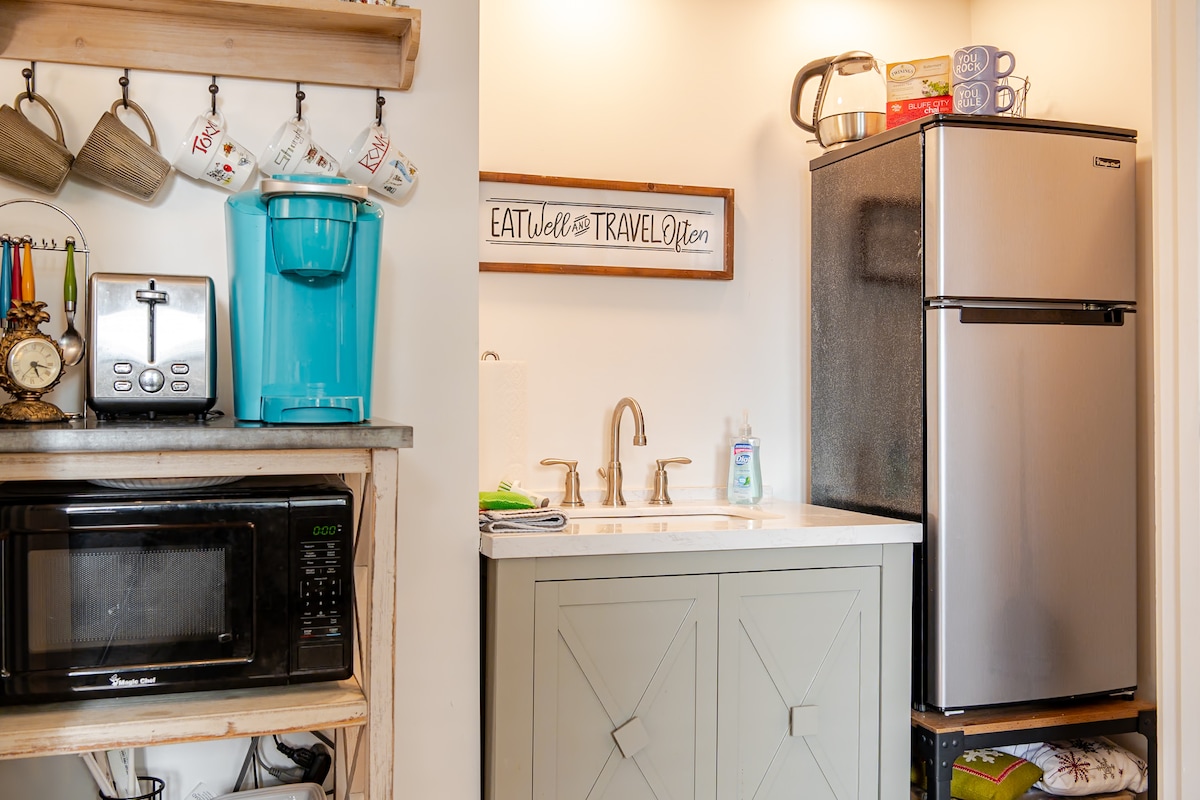 Immerse yourself in the Soul of Memphis in our centrally-located 1907 Arts & Crafts Carriage house. This luxury tiny home was taken to the studs and completely redone with historic preservation and architectural design at the heartbeat of the project. Nestled in the Historic Annesdale Mansion Preservation District, we're the ideal space for a small family, a couple's getaway, or a traveling nurse. State-of-the-art home theater, 24' cathedral ceilings, gated parking under carport & full kitchen!