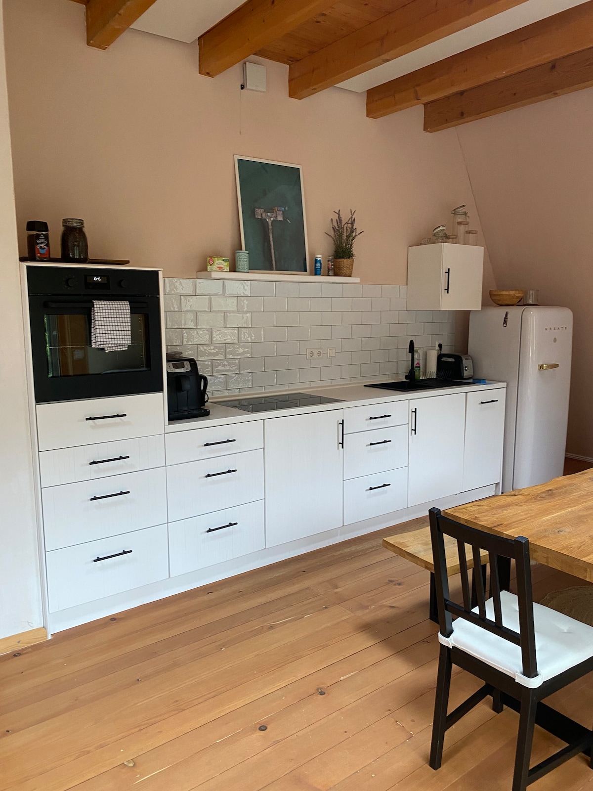 Liebe Gäste, das Penthouse von Loftalive ist der Ausdruck des modernen Freiheitsgefühls. Die Balance zwischen modernen Designelementen, offenen, lichtdurchfluteten Räumen und die erdende Ruhe der Natur, machen das Penthouse zu etwas ganz Besonderem. Hier können Sie Auftanken, oder auch ganz in Ruhe arbeiten, sich von einer Geschäftsreise erholen, Live-Cookings organisieren und Retreats planen!
