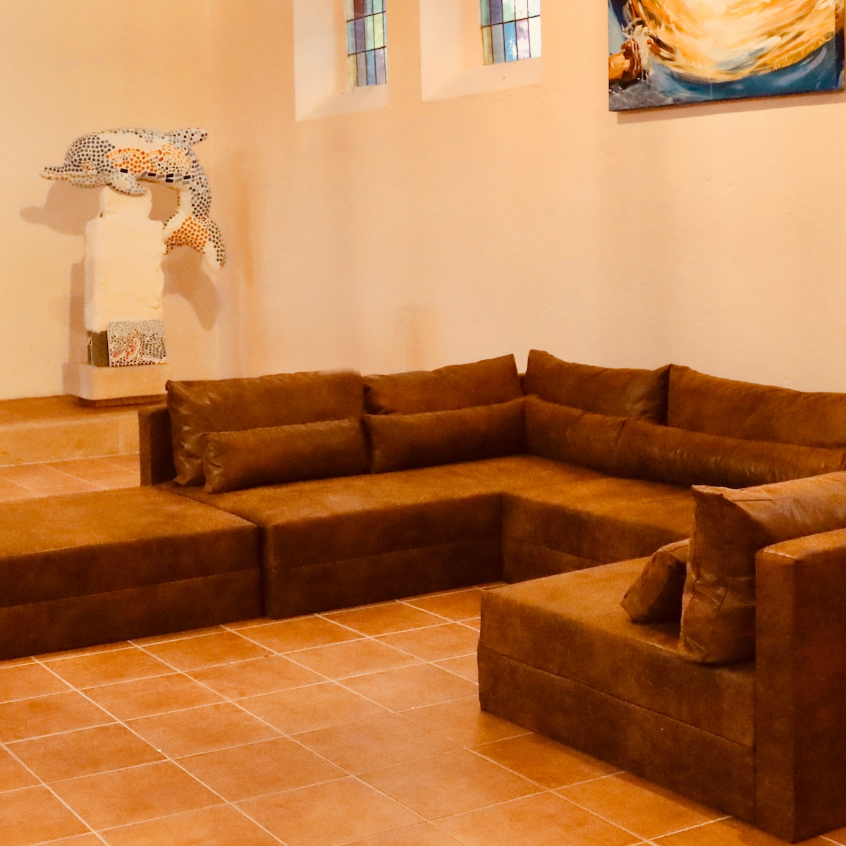 This historic building is located on the edge of a quiet village near Magdeburg. The former parsonage with church nave combines unique architecture with a calm atmosphere. Two bedrooms on different levels accommodate up to four or six (summer) guests, with additional sleeping options available. The kitchen is well equipped. The bathroom with sauna, shower and bathtub invites you to relax. A place for people who want to spend time consciously.