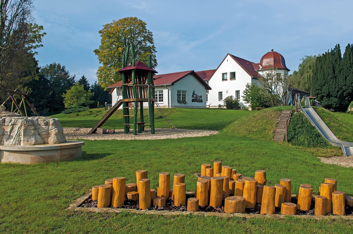Close the door – start your vacation! In our family rooms with a terrace, two separate bedrooms, and a modern bathroom, you can relax and enjoy your well-deserved vacation amidst the natural beauty of Saxon Switzerland. Each room includes a modern bathroom with sustainable, organic care products and a TV. A hairdryer, kettle, and coffee maker are also provided.
