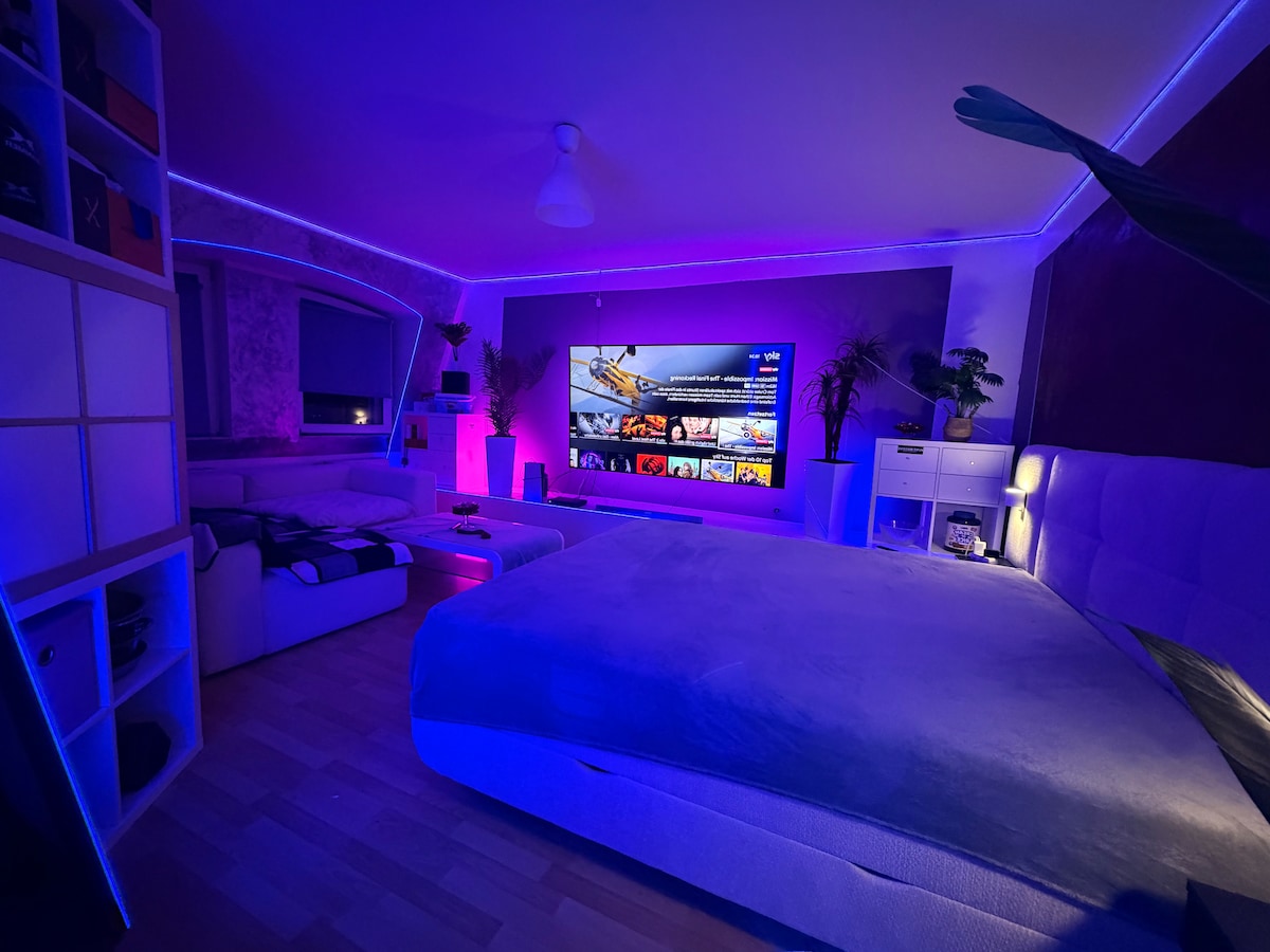 🌷Willkommen 🌷 In unserer kleinen Privaten Unterkunft im Industriegebiet! Über unserer Firma erwartet euch eine kleine Wellness Oase - ideal für Paare, die Entspannung suchen. Genießt die Tolle Aussicht vom Jacuzzi aus. Die Schiebefenster lassen sich alle komplett Öffnen. Lasst den Alltag hinter euch und genießt die Zeit zu zweit 🥂 * Bitte beachtet, dass die Internetverbindung momentan nicht so stabil ist*