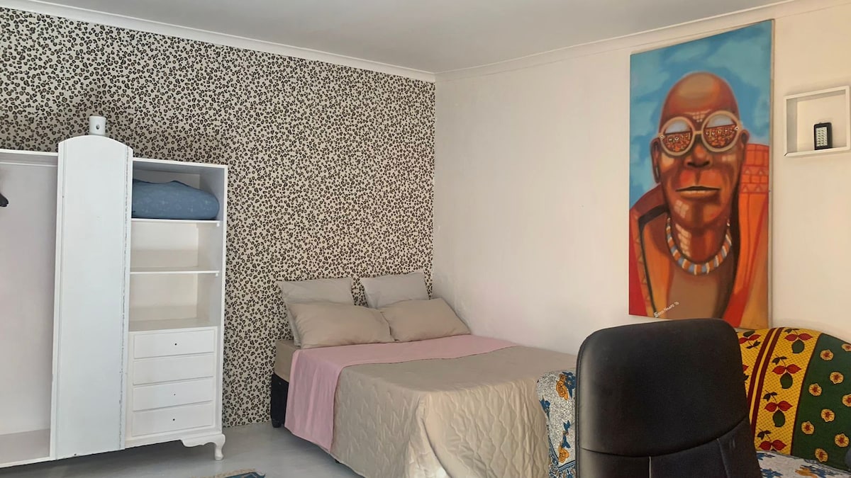 Recently renovated cottage by the pool with double bed with lounge area and a private braai area, kitchen, sofa bed and work station. ✔ Pool next to lush garden ✔ 50Mpbs+ WiFi ✔ Smart TV with Netflix ✔ Shaded parking for two vehicles ✔ Work space with ethernet connection ✔ Washing machine ✔ Dishwasher ✔ Fridge ✔ Gas Stove ✔ Microwave Oven ✔ Fully loaded kitchen utensils. Situated in a central location and close to all amenities. Suitable for three people. Suitable for long term stay as well.