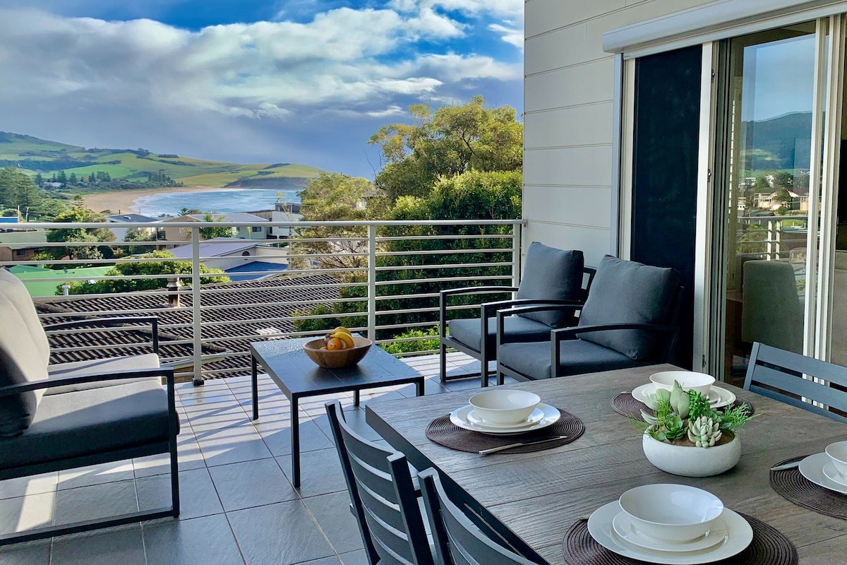 Beautiful new entire house with 180 degree ocean views. This immaculate quality modern home has everything you need for a short or long stay. Floor to ceiling sliding glass doors open the entire wall seamlessly joining the indoor and outdoor areas, showing magnificient views of Kiama and the sea. Wake to see the ocean from the master bed. Relax on the lounge or daybed and enjoy all the modern conveniences you'd expect from a quality home. Almost everything is brand new and quality