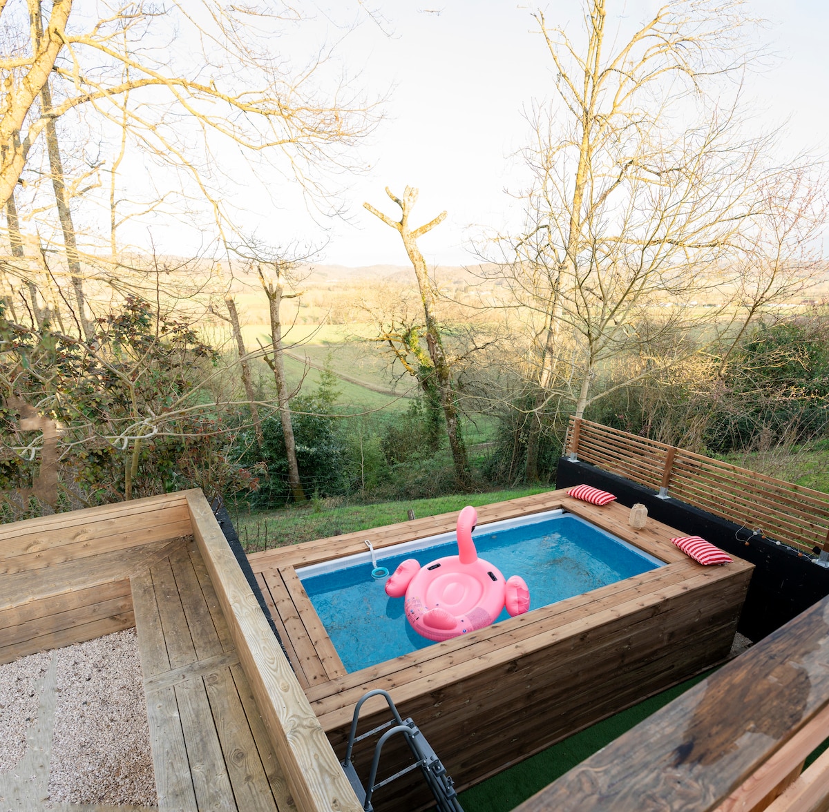 7 hectares de Nature avec un duo de cabanes pour vous seuls. La Cabane Perchée à 10 m de haut avec sa passerelle d'accès de 40 mètres avec sa dépendance privatisée la cabane jacuzzi. Deux Cabanes rien que pour vous sur un parc naturel de 70 000 m2 avec nos animaux paisibles et une belle vue sur un très grand vallon jusqu'aux Pyrénées (par temps clair). OPTIONS: petits déjeuners a 11€/ personne, nous contacter. La Cabane Perchée Au Bois d'Emma et Loue à Eauze.