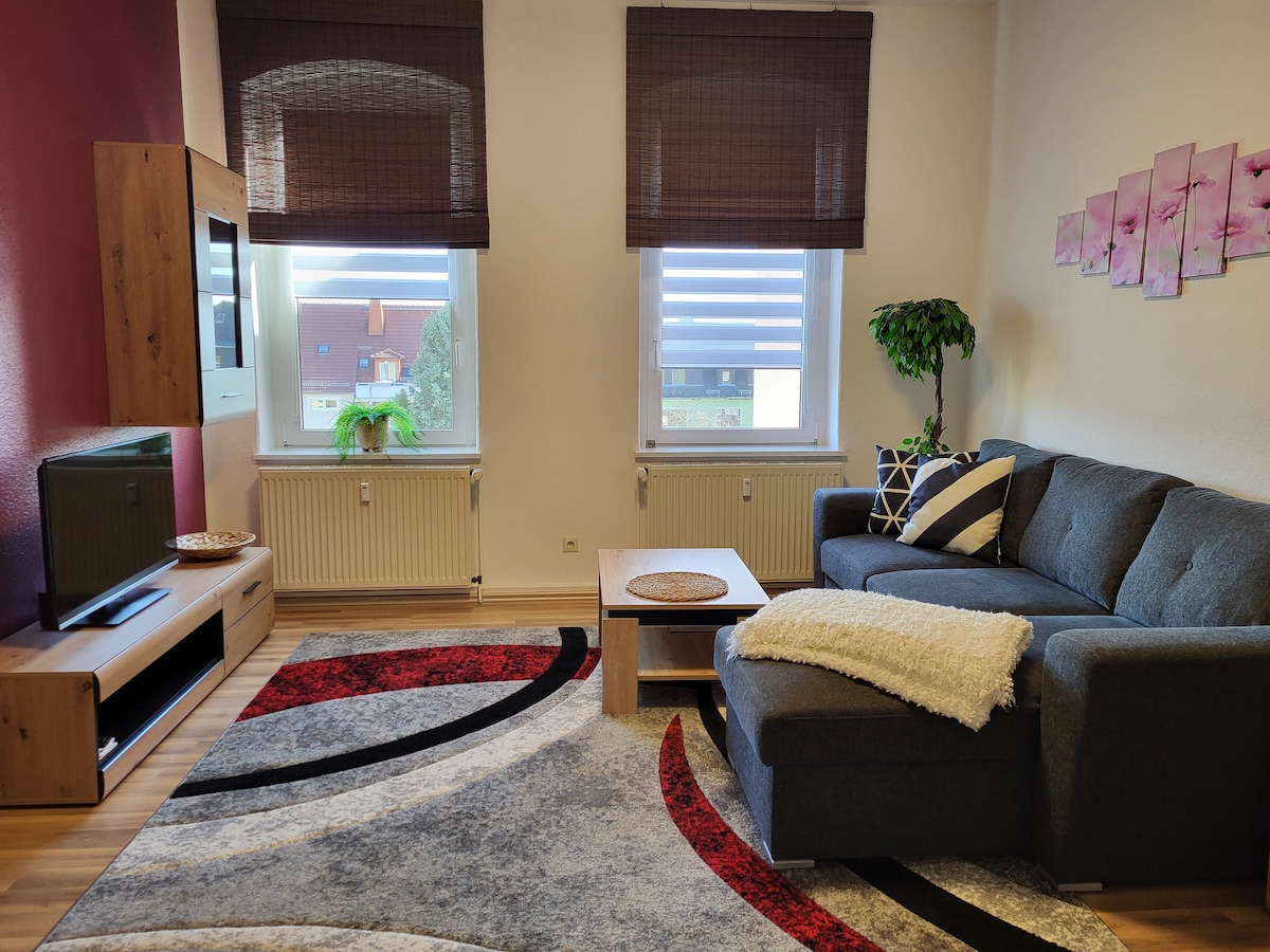 Unsere schöne Ferienwohnung liegt im Stadtteil Chemnitz - Reichenhain. Sie bietet eine moderne vollausgestattete Küche, Wohn- und Schlafzimmer, ein Tageslichtbad mit Badewanne/ Dusche. Das Wohnzimmer ist mit einer gemütlichen Couch, Fernsehsessel, Flachbild-TV, WLan und Stereoanlage ausgestattet. Die Couch kann als vollwertige Aufbettung für 1-2 Personen genutzt werden. Das Schlafzimmer ist mit einem bequemen Boxspringbett, einem Einzelbett und einem großen Kleiderschrank ausgestattet.