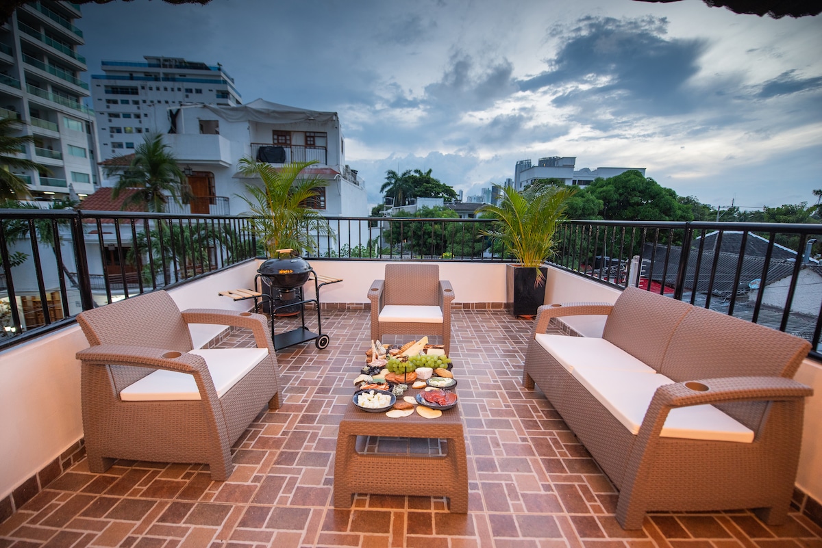 Disfruta de nuestro acogedor apartamento en Getsemani, uno de los lugares más alegres y seguros de la ciudad. Siéntase libre de respirar la tranquilidad y comodidad de los tres niveles pensados para usted. Sube al tercer nivel en la mañana a disfrutar de un buen café en medio de una hermosa decoración Caribeña, en la noche tómate un buen vino en compañía de familia ó amigos mirando el cielo cartagenero y la brisa marina te acaricia.