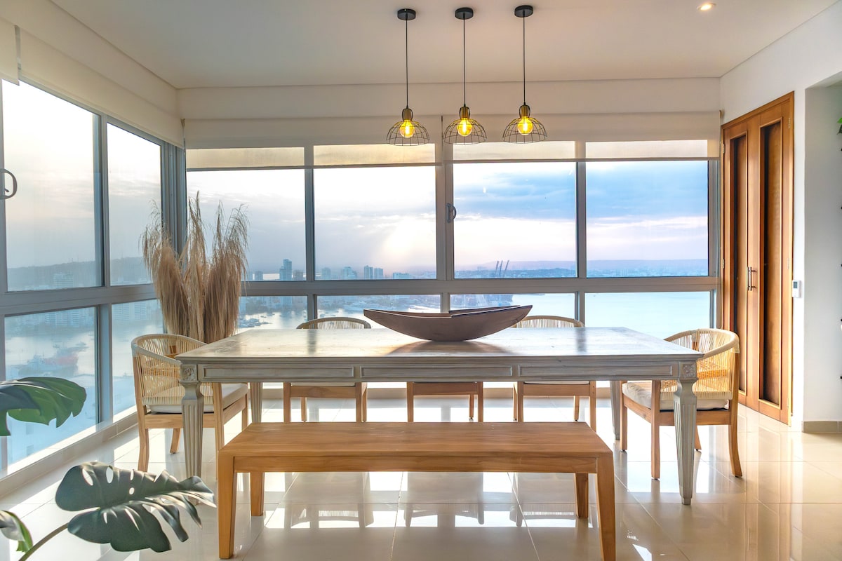 This unique place has a style all its own. If you’re looking for an unique Cartagena experience this is the place to stay. This condo is located in Marbella, upcoming and very central area, near the old city and just a short walk to the beach. Here you will be able to enjoy stunning views of the ocean and the coast line. There is two master bedrooms with en-suite bath, both with king size beds. Open kitchen, living room, dining room area. The apartment is a high floor duplex, two level condo.