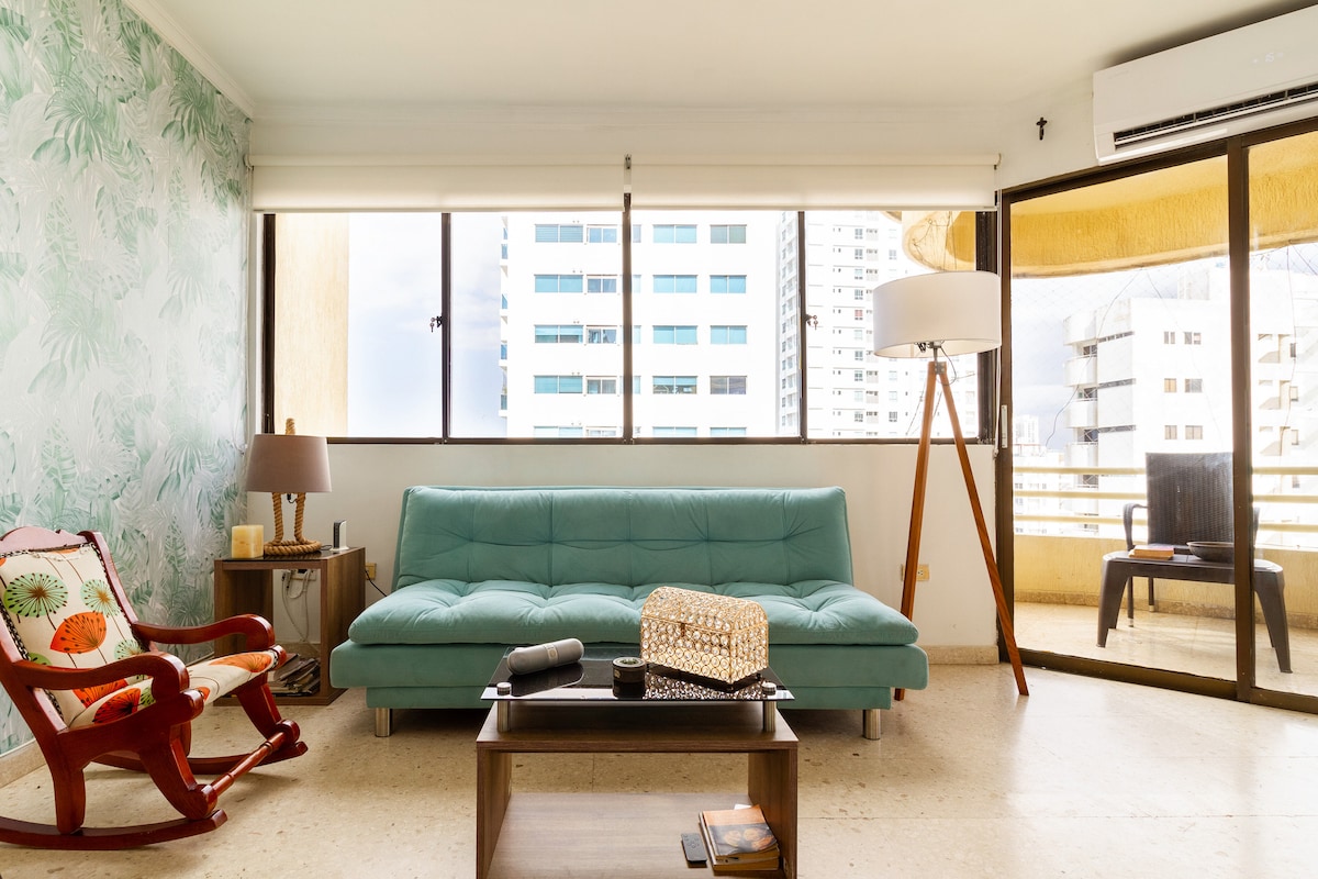 Nuestro apartamento tiene una vista paradisíaca y una excelente ubicación. Es ideal para quien quiere conocer Cartagena, descansar o trabajar con la mejor vista de la playa. Recostarse en la hamaca a ver la puesta de sol o sentarse a tomar algo en el balcón o en la sala con la brisa del mar es una experiencia única. Además el edificio tiene todo lo que necesitas para pasar las mejores vacaciones: piscina, jacuzzis, sauna, turco, gimnasio, parque de juegos, seguridad 24hs.
