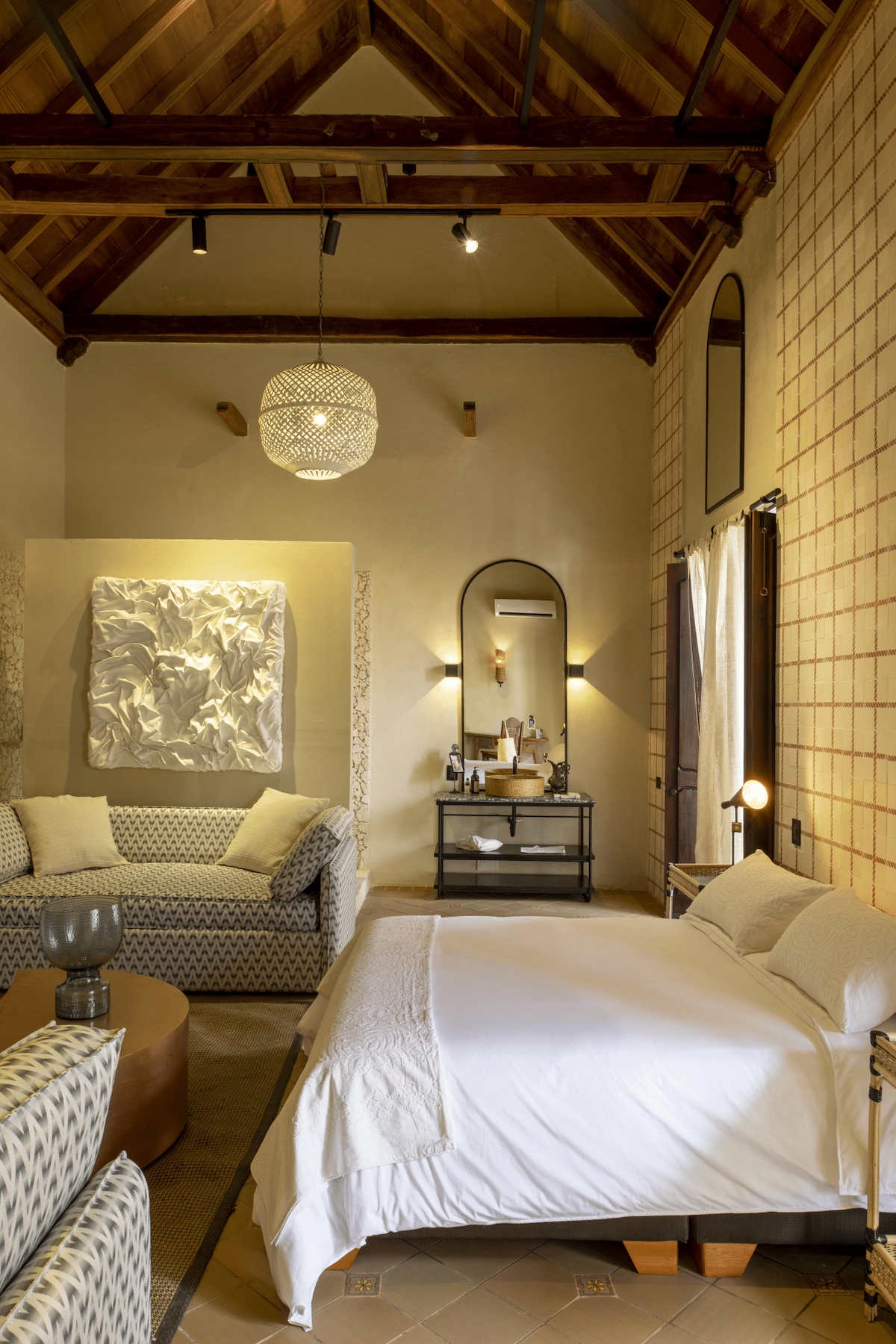 A true sanctuary of peace. We have designed this room for your total relaxation, removing the TV to ensure a deep disconnection from the outside world. Instead, access Patio Corao's premium services: Our refreshing outdoor pool, soulful architecture, and personalized support from our concierge service are at your complete disposal. Enjoy the break!
