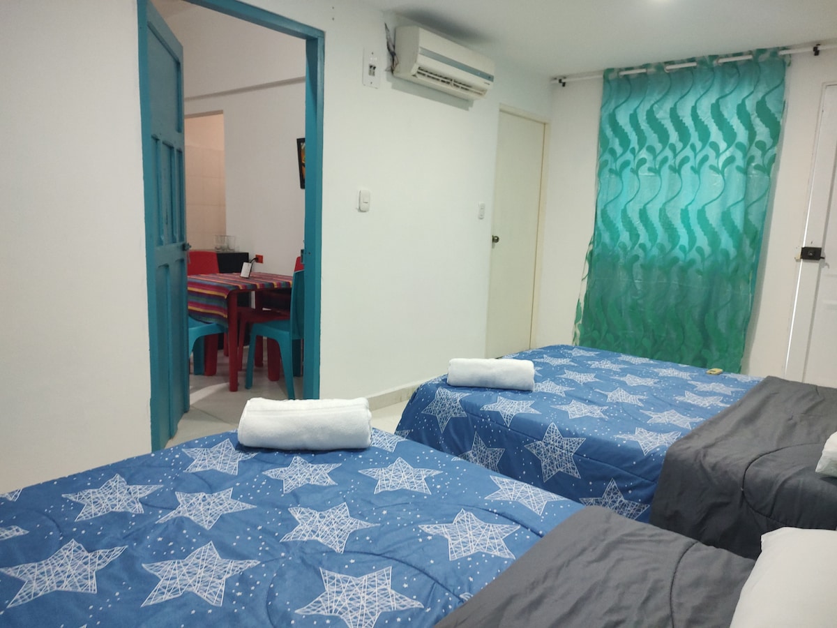 Un lugar magico en un entorno de riqueza, cultural y arquitectura colonial en el enigmático y facinante vecindario de getsemani. Es un apartamento comodo, limpio y seguro con dos camas dobles, que puede alojar a cuatro personas comodamente. La habitacion tiene aire acondicionado para un descanso confortable en una noche tropical La sala y la cocina estan integradas y cuentan con un comedor, estufa a gas y refrigerador para que prepares tus recetas favoritas.