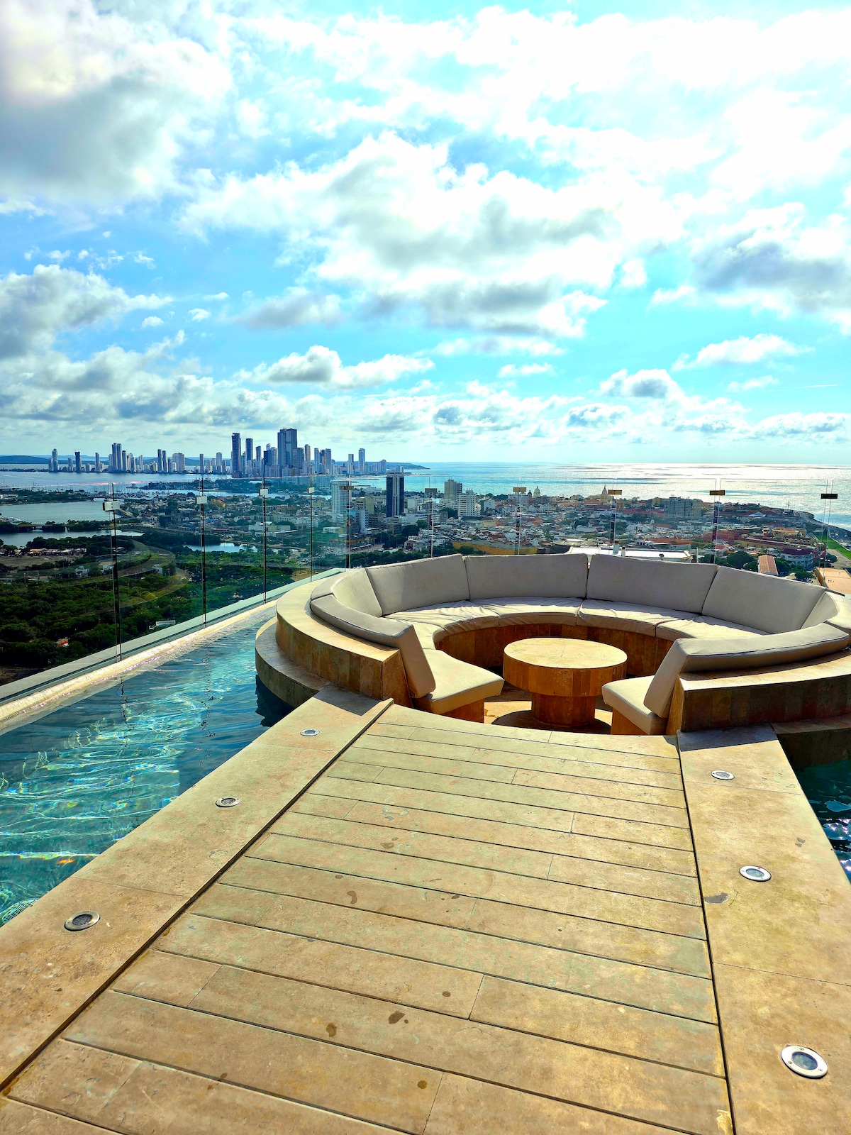 Exclusive 30th floor apartment Morros City with incredible and captivating sea and historic center views. Master bedroom with direct sea view and balcony access. Full kitchen, 2-in-1 washer and dryer, 60" Smart TV, 500MB fiber optic WiFi. Beachfront Bocagrande with luxury amenities: pool, jacuzzi, Turkish bath and gym. Free parking. Ideal for couples seeking the most exclusive experience from the highest available floor in all Cartagena