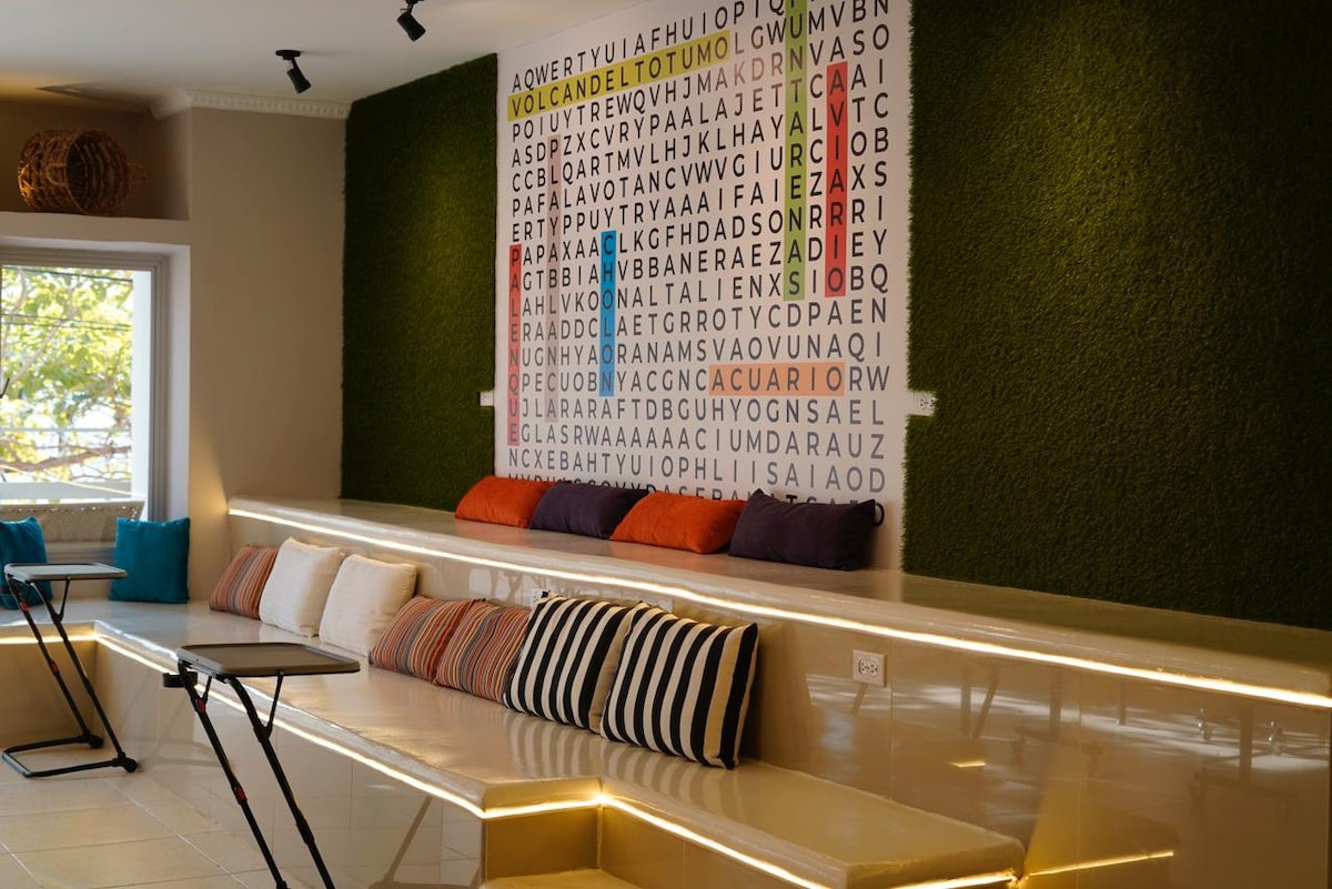 This exclusive duplex offers a one of a kind luxury experience in Cartagena. Just 5 minutes from the airport and close to the historic center, it has a jacuzzi in the room with panoramic view, pool table, Balcony pin pon, and video game machine. In addition, its projector will allow you to enjoy movies on a giant screen. Private balcony, outdoor shower. Every detail is designed to provide you an indulgent and luxurious stay, combining comfort and entertainment in one place.