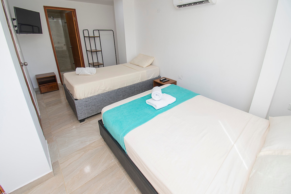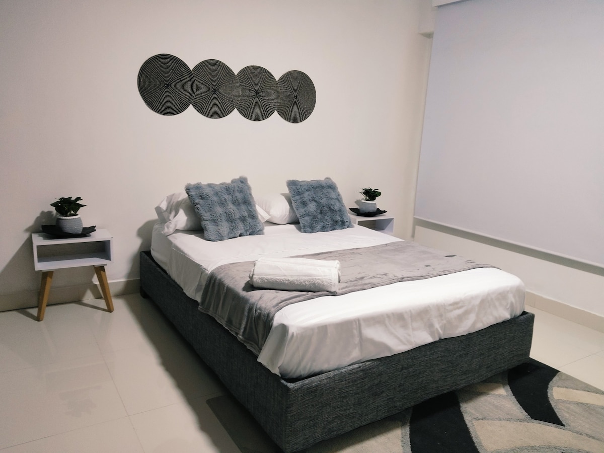 ¡Bienvenido a tu refugio caribeño en Bocagrande! A tan sólo una cuadra de la playa principal, este rincón encantador te recibe con seguridad, limpieza impecable y una tranquilidad paradisíaca. Camina al ritmo del mar hacia los mejores restaurantes; relájate y déjate envolver por una experiencia acogedora y llena de frescura tropical.