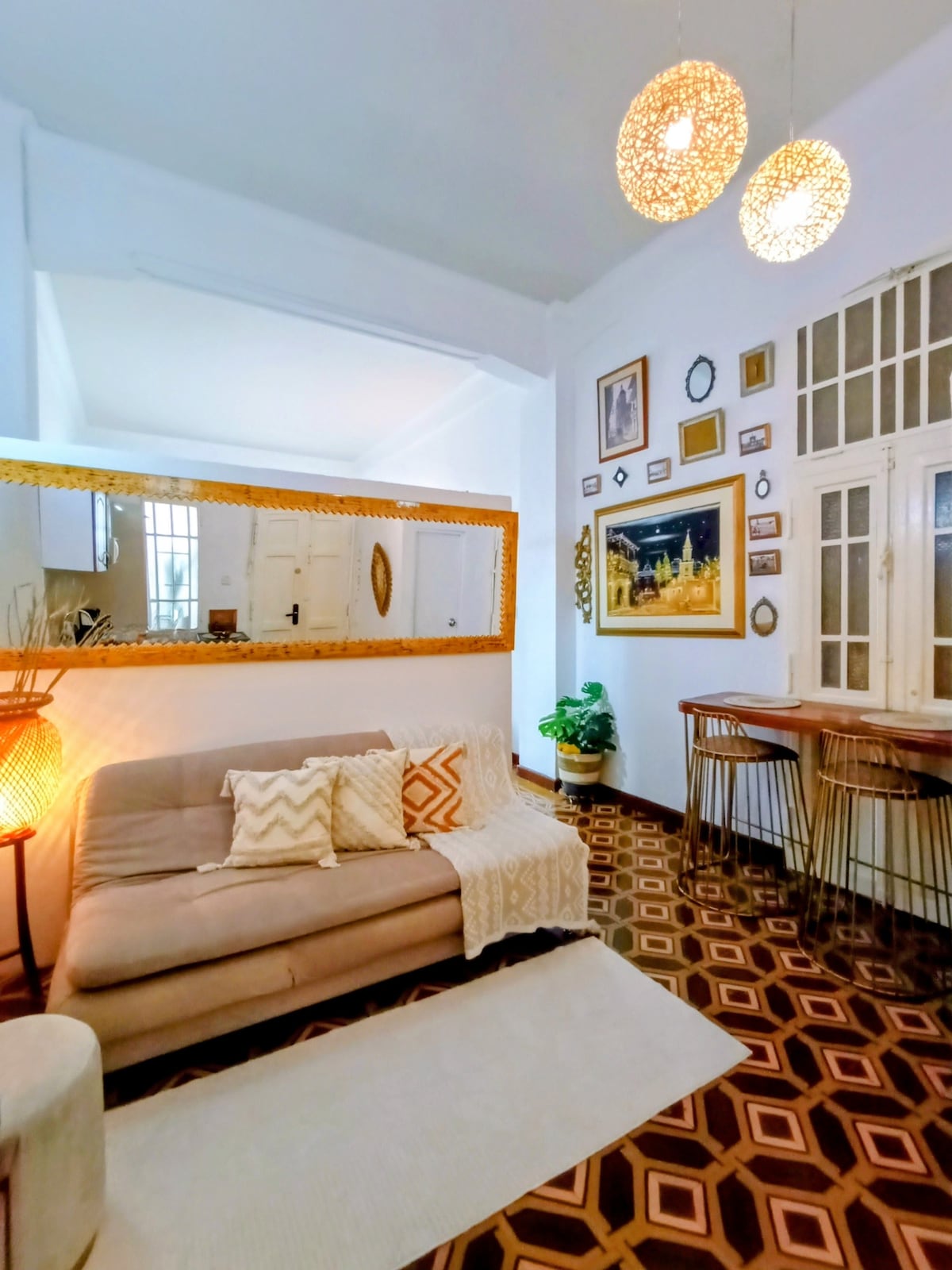 Loft colonial en el corazón del Centro Amurallado de Cartagena, Disfruta de techos altos, un gran ventanal y una atmósfera elegante llena de luz natural y encanto. El Loft dentro del Centro Histórico de Cartagena, a pasos de la Torre del Reloj, ofrece fácil acceso a todo lo que hace que este lugar sea tan especial desde los animados mercados locales y los modernos café, restaurantes, bares, encontrarás algo nuevo y emocionante para explorar en cada esquina.