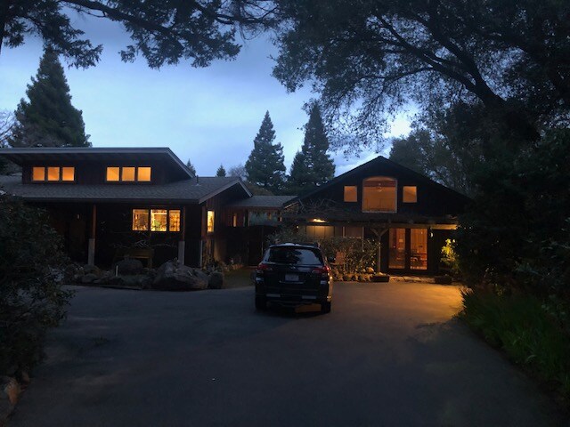 We self-developed our rural property as a secluded retreat with dog-friendly gardens. To share our creation with you, we designed a private 2nd-floor guest suite (ok to bring your good dogs). Your suite includes secure parking, private entrance, deck, kitchen, dining, living, 3 beds (queen, double, twin), one bath & a fenced back yard. We are on a country road near Healdsburg, Windsor, Russian River, Sebastopol, Santa Rosa, Calistoga, Sonoma & Napa valleys, wineries & beaches.