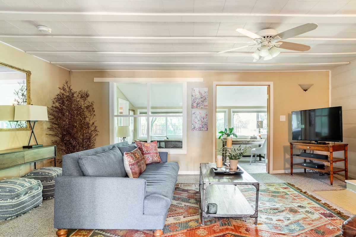 Your private Healdsburg retreat—just a 4-minute walk to downtown wine tasting rooms, restaurants, shops, and the Farmers Market. This stylish guest cottage offers parking in front of a private entry, garden with al fresco dining, BBQ, lounge area, and a fully equipped Pilates studio. Designed with international contemporary art and thoughtful touches, it’s perfect for a weekend escape or a longer stay while house hunting.