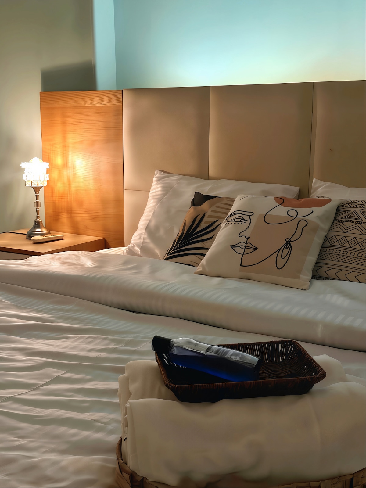 Your front-row seat to the Nile where you can enjoy the morning light on the river. the Nile is part of your day—coffee by the window, an evening walk on the corniche, an easy return home. Indoors: fast Wi-Fi, a 55-inch smart TV, and a fully equipped kitchen. At night, settle into hotel-grade Egyptian-cotton linens; noise-insulating windows, electric shutters, blackout curtains, and steady A/C keep the room cool and dark for deep sleep.