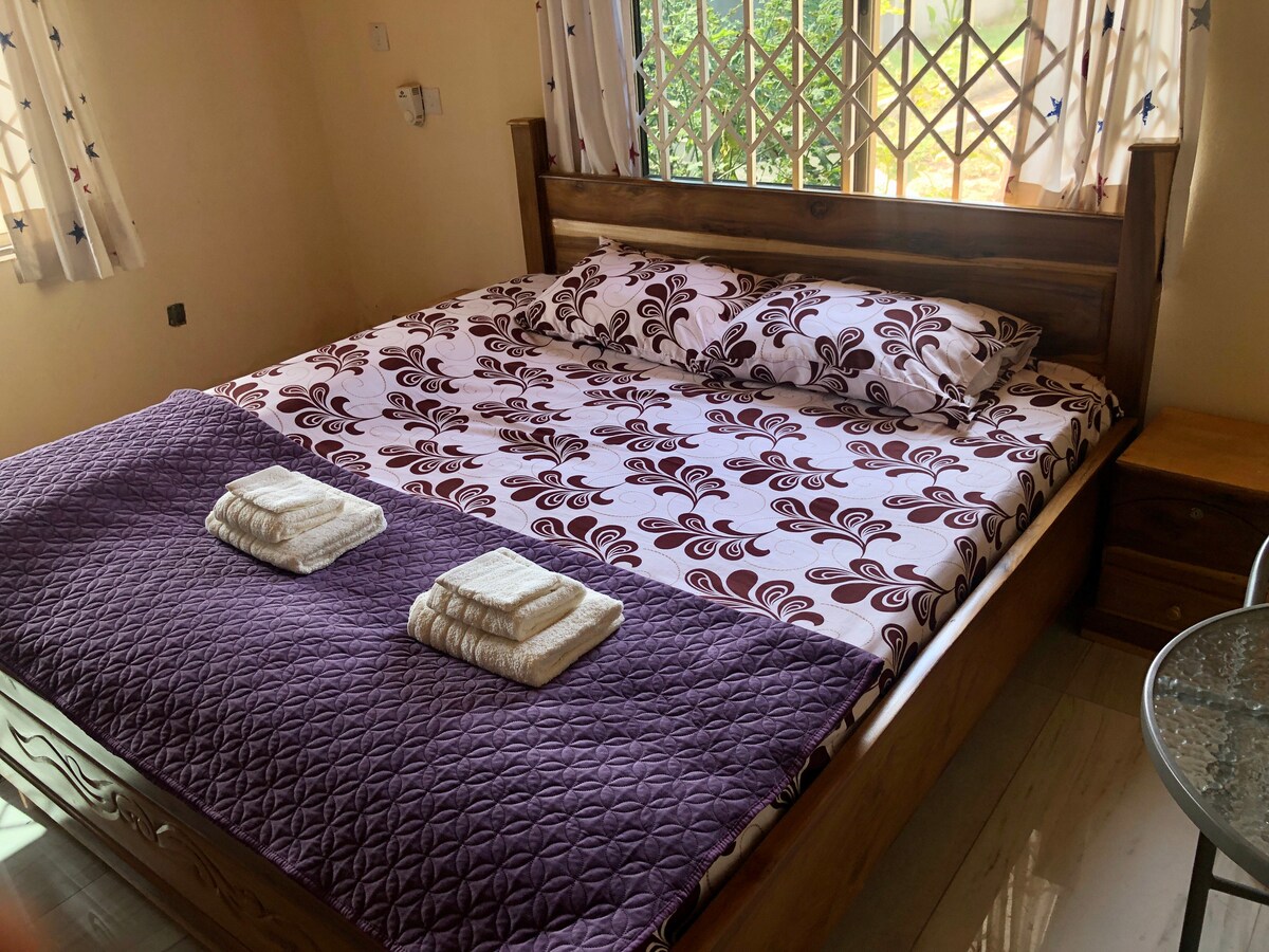 My parents are christian marriage coaches and love hosting couples looking for time away from the busyness of Accra. This chalet is one of 2 chalets in a garden retreat center they are building to host relationship and wellness programming. We're proud to be 100% natural including exclusive use of organic cleaning products, an organic farm, and solar power. You can see our exceptional reviews and other listings under my profile. No smoking, and No commercial or professional photography