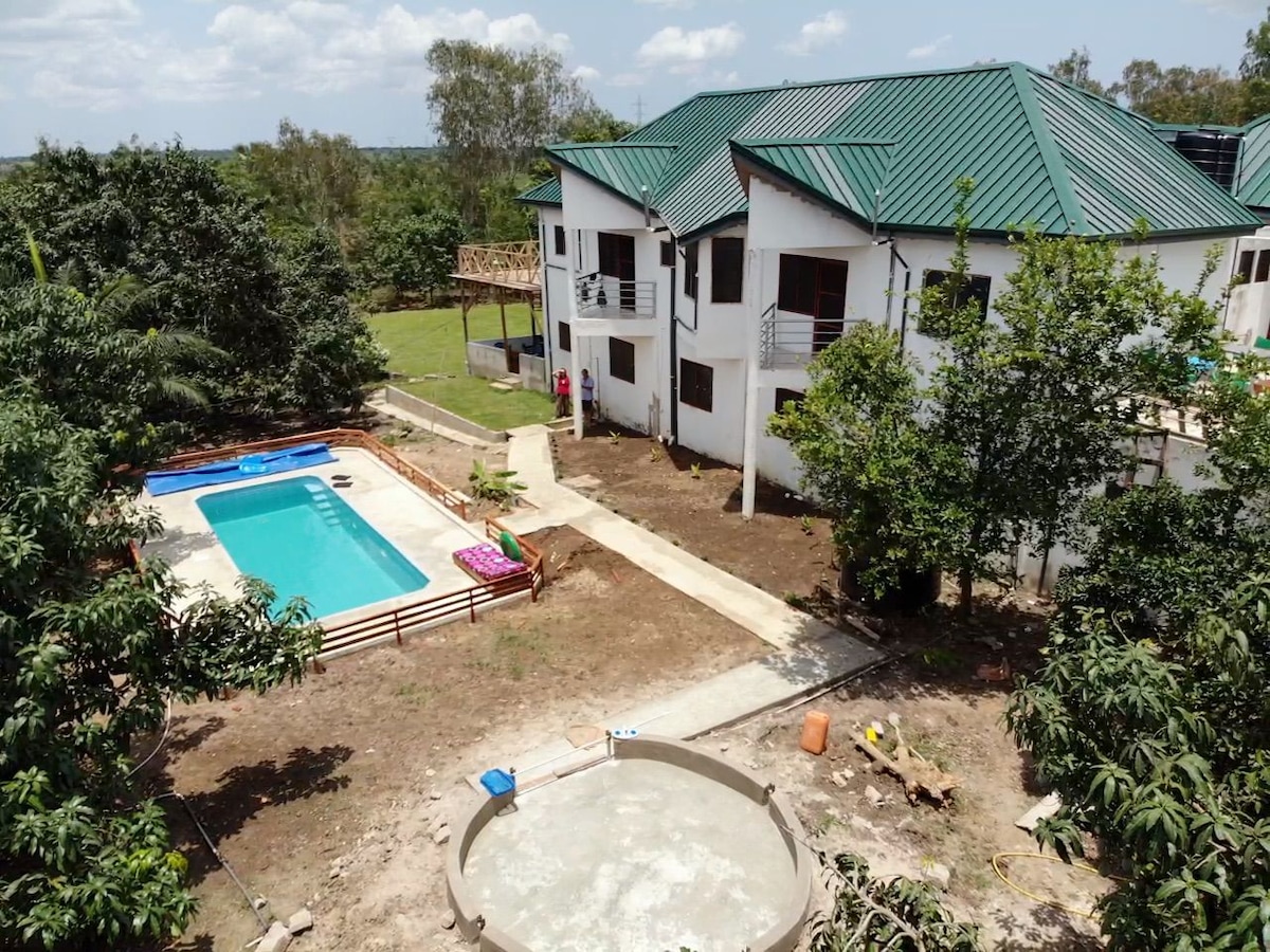 Relax at our fully-catered farm lodge with pool