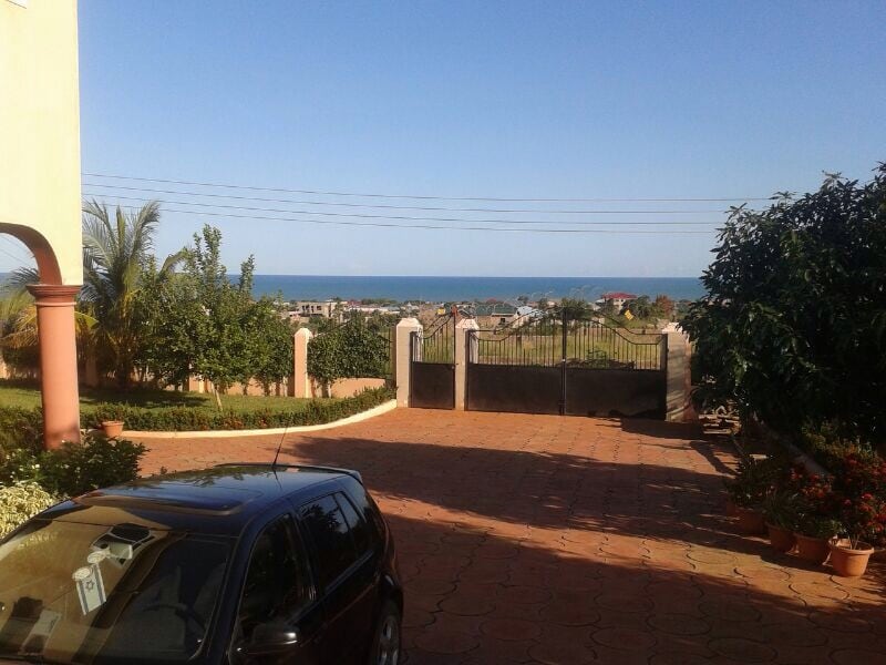 Enjoy the glamour of this stylish, upscale home. You are always steps away from the beachfront. Less than a hour from Accra! With big bay windows the ocean is at your doorstep; and should you choose you have the ability to enjoy the gentle sea breeze on the rooftop or at the lower level to dip your toes in the sand! Truly a serene, picturesque setting with lots of privacy! Guests can host get togethers in downstairs lounge!