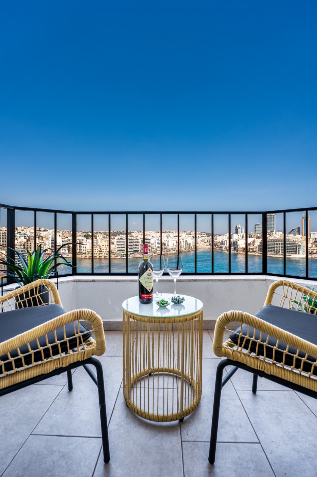 A beautiful, spacious, family and work-friendly, serviced apartment with views in Mellieha's most sought-after residential area. The apartment is fully airconditioned and has a 2/3 seater private jacuzzi on its terrace. Guests also get access to the fully equipped gym in the same building. The apartment is a 15-minute walk to Malta's largest sandy beach (2 minutes by car) and relatively close to all amenities, including supermarkets, shops, hairdressers, etc.