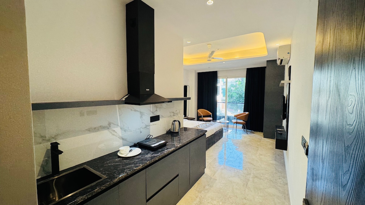 Indulge in luxury at our 1BHK with private kitchen, where modern comforts meet timeless luxury. Immerse yourself in an ambiance of sophistication, featuring plush furnishings, premium amenities. Daily sanitized Service Apartment Attractive discount for long stays. Special offer for 7/28 days stays.