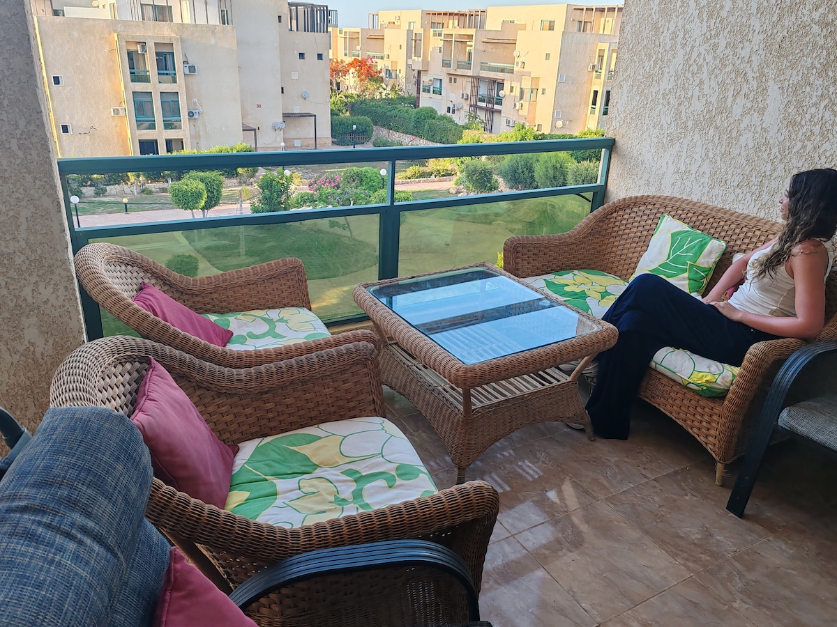 Steps to the beautiful Marina, enjoy the walk and all types of restaurants and cafés. Beside Address beach,Vida Marassi The apartment has one queen size bed beside a sofa bed , fully equipped kitchen and big bathroom. A family of two adults and two kids will be enjoying the beach and swimming pools. You can use Marassi golf cars to move around so you don't need your car!