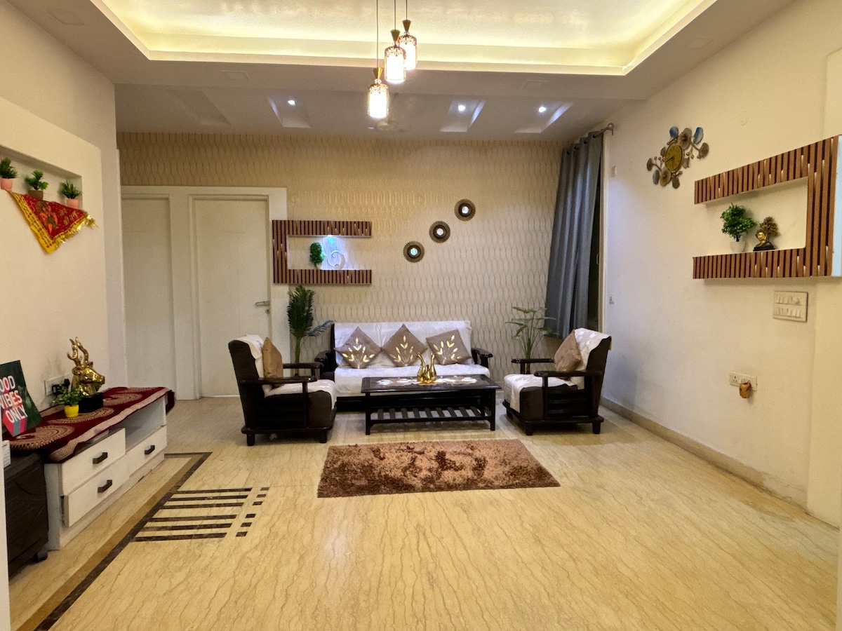 Stylish Comfort in the Heart of Rajnagar Extension A cozy, modern stay in the center of Rajnagar Extension. Enjoy easy access to shops, cafes, salons, groceries, and local food stalls — all just steps away. The fully furnished flat offers elegant decor, soft lights, and comfy furniture. Ideal for work trips, family visits, or city breaks. Feel right at home in a safe, walkable, and vibrant area with everything you need nearby.