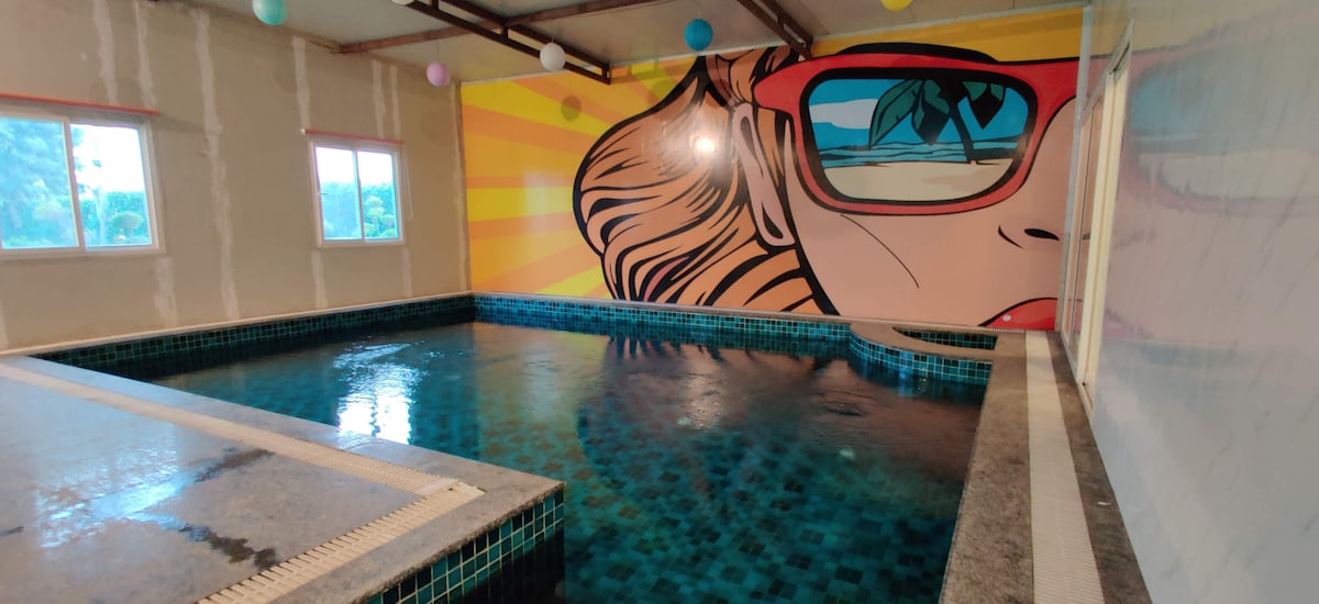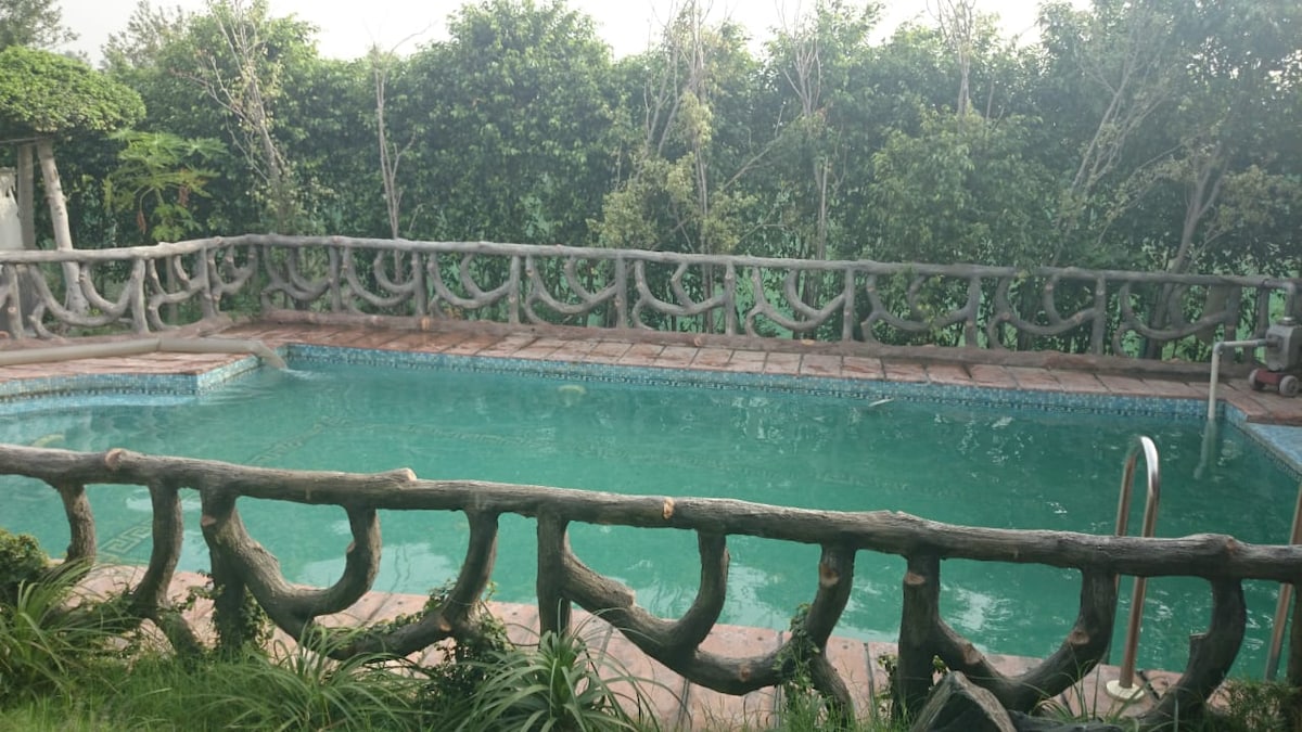 Reconnect with nature at this unforgettable escape. Enjoy the countryside farm and pool in the midst of green fields and forget the hustle of city. Relax in the lap of nature to forget your worries. Enjoy whole day fun and relaxation with your family, friends and kids. Enjoy our delicious food , watch birds, play childhood games and much more. On top of everything, mesmerise yourself in clean and filtered water of pool for unforgettable experience.