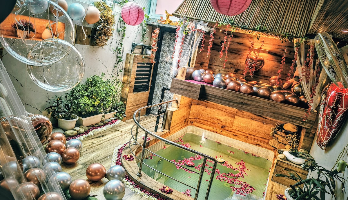 Kudarat offers a private ground-floor stay with a plunge pool attached to the bedroom, completely exclusive for your comfort and privacy. A hut-style bamboo bed above the pool creates soothing, romantic vibes, almost like floating on water. Surrounded by real plants, natural rocks, and a cozy sofa, the covered space feels calm, warm, and intimate. Designed with nature-inspired elements, Kudarat offers a safe, peaceful, home-like vibe — perfect for couples and special celebrations 😇