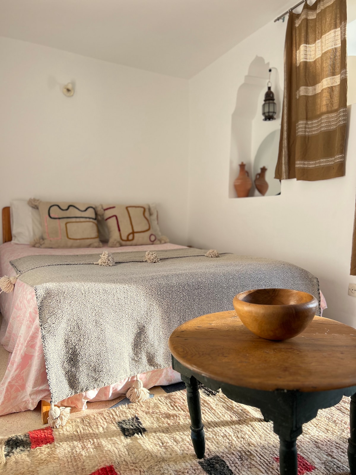 Studio très lumineux et sans humidité (très rare dans la médina) de 47m2 exposé au sud, situé dans une ruelle calme, à deux pas de la rue principale. Le studio se trouve à proximité des commerces, du souk, des cafés et des restaurants. Le toit-terrasse, également exposé au sud, offre une vue sur la plage. Le parking et la station de car “supratours “ (qui relie Essaouira à toutes les grandes villes) sont à 500 mètres de même que la plage et la place Moulay El Hassan. Studio idéal pour un couple