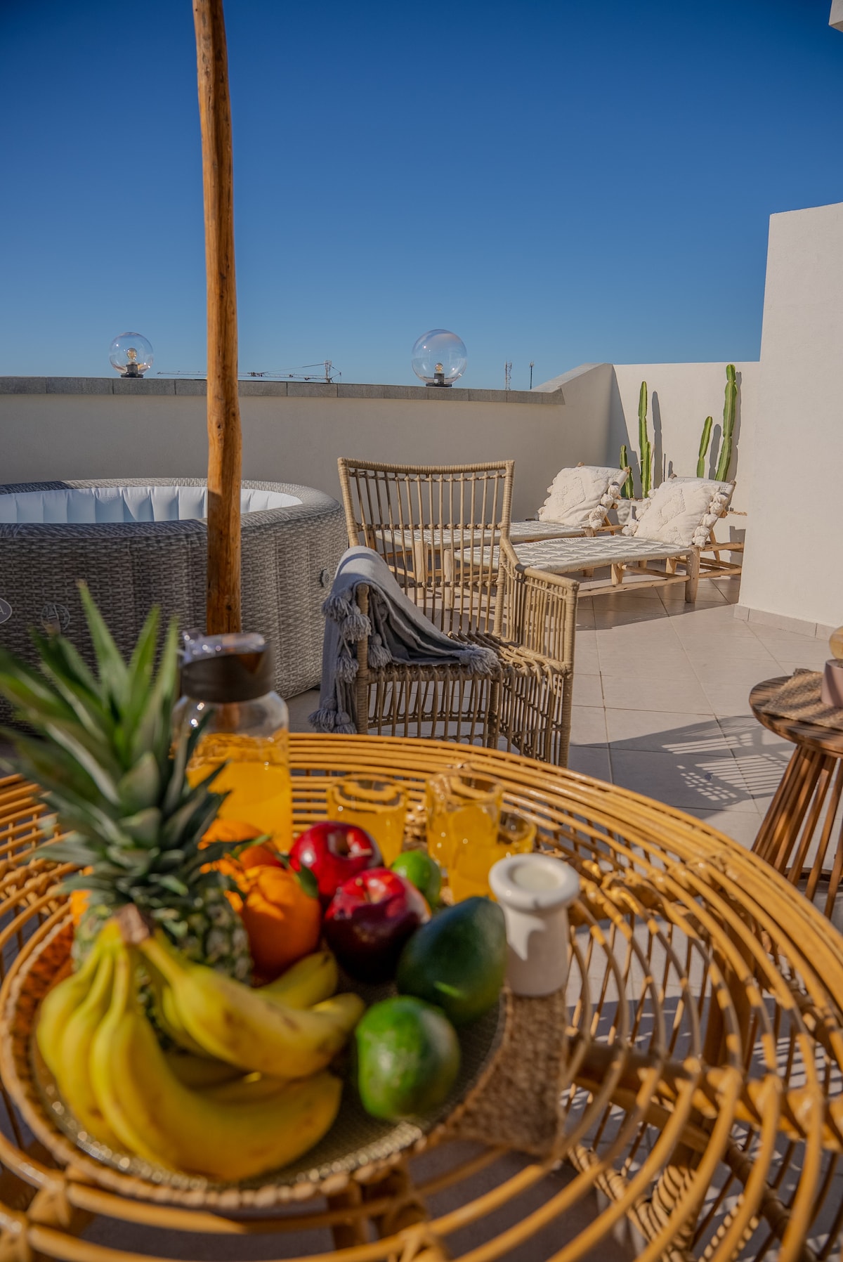 Studio atypique et lumineux sur un grand rooftop féerique privée, au sommet de La Casa Guapa. Chambre cosy avec lit king-size, salle d’eau, cuisine extérieure en bois sous pergola, vue sur la médina et l’océan. Idéal pour une escapade à deux, au calme, en pleine lumière dans un lieu magique et atypique. Coin repas, transats, Wi-Fi. Situé dans un quartier authentique et vivant, à moins de 10 min de la plage et 20 min de la Médina. Services sur demande : transferts, massages, activités...