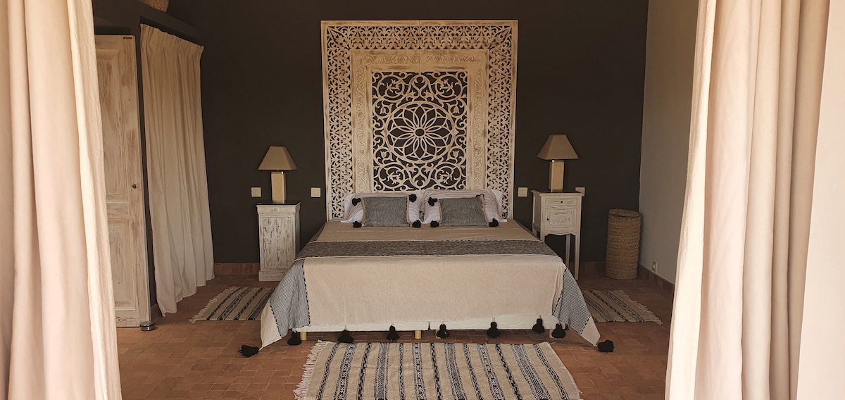 Coup de cœur assuré À découvrir chambre meublée avec goût, salle de bain privative et dressing à seulement 15 min d’Essaouira et de Sidi Kaouki Laissez vous séduire par ce logement d’exception au cœur d’un domaine paisible. Alliance parfaite entre nature confort et tranquillité Grande piscine et jardin arboré Terrasse avec vue sur jardin et campagne Pergola orientée sud-ouest pour détente et collation Pool house avec kitchenette