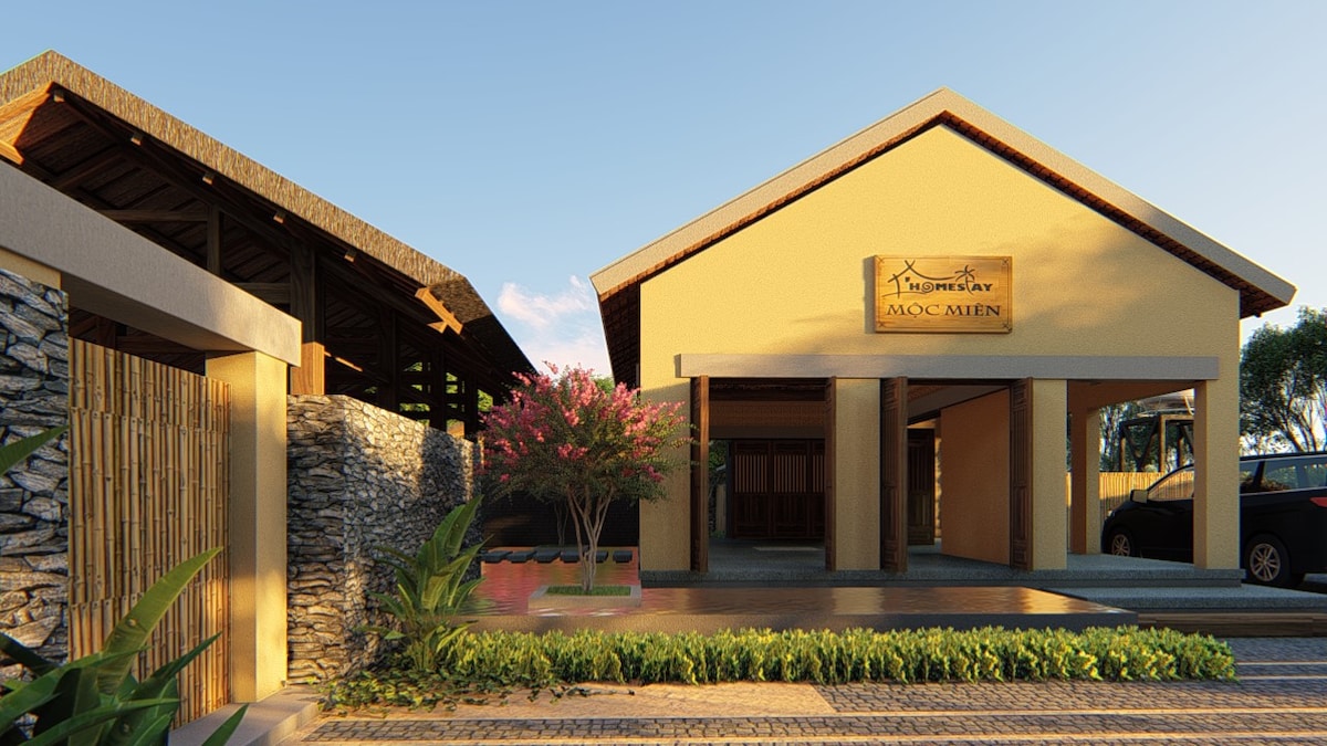 Stretched nearly 2000 square meters, Moc Mien Rocky Garden features 20 spacious 5 deluxe Bungalows, all with private garden view terrace. Over 5 tents in 200 square meters camping area middle 1000 square meters green and nature garden planted many special local vegetables. All bring to guests the countryside atmosphere. Designed with Rocky Walls lead guests to open space inside, arranged without cement by native bricklayer cleverly.