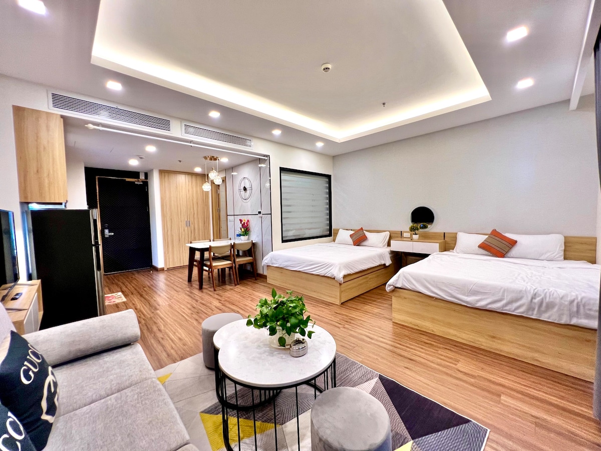 Welcome to a relaxing seaside retreat in the heart of Quy Nhon! This modern and cozy studio with a sea view balcony is located inside TMS Quy Nhon - Hupasearest - just a 2-minute walk from the beach. Ideal for couples, solo travelers or business travelers looking for a clean and fully-furnished space like your own home. 🛏️ The studio is equipped with: 1 comfortable King-size bed. Air conditioning, Wi-Fi, Smart TV. Kitchenette with refrigerator, cooking utensils. Private bathroom with hot water