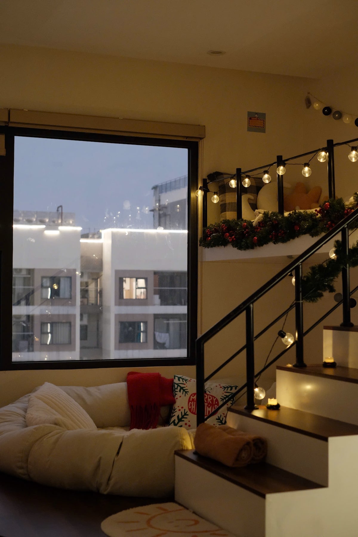 Căn phòng ngập tràn lãng mạn, tận hưởng netflix & chill Với thiết kế lấy tone trắng đen làm chủ đạo, decor thanh nhẹ với phong cách art châu Âu, cùng sắc đèn vàng ấm cúng, ban công hướng ra ngoài thành phố, máy chiếu có Netflix để chill buổi đêm, khu bếp nhỏ để tự nấu những món ăn thật ngon cho bản thân,...chắc chắn sẽ giúp bạn có những trải nghiệm chữa lành tâm hồn thật đặc biệt.