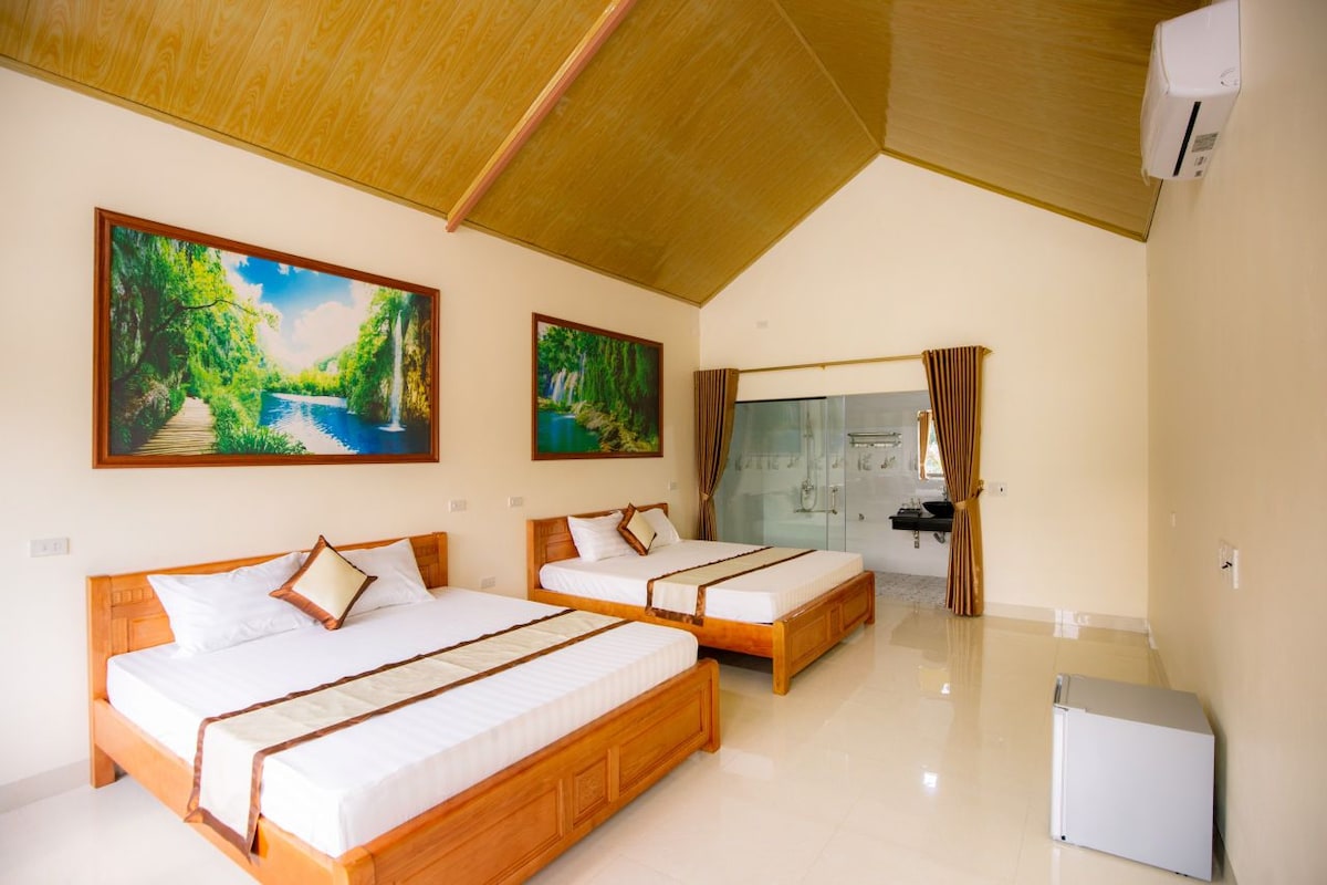 Escape to our charming double bungalow at Ninh Binh Family Homestay, designed for comfort and tranquility. This cozy retreat offers a perfect blend of modern amenities and traditional Vietnamese charm, making it an ideal getaway for couples . Enjoy the serene ambiance of our lush gardens and take a refreshing dip in the pool. Experience warm hospitality from our family and explore nearby attractions like Bai Dinh, Trang An, Hang Mua, Tam Coc, Hoa Lu Ancient Capital, and Cuc Phuong park.