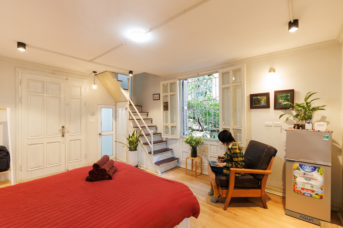 An incredible Studio Room, with gorgeous decoration and 6-star hospitality"""" - said guests about our amazing house: - 4th floor, no lift - 30 square meters of Studio Room - Free washer & dryer & Free refill water - Fully stocked & equipped kitchen - Free luggage keeping - Secured Parking - 15 mins walk to Downtown - 10 mins walk to Train Station & Airport Shuttle Bus - Quite & safe neighborhood - Tour HaLong, Ninh Binh,.. - Airport pickup service (with fee) - Sim Card for sale