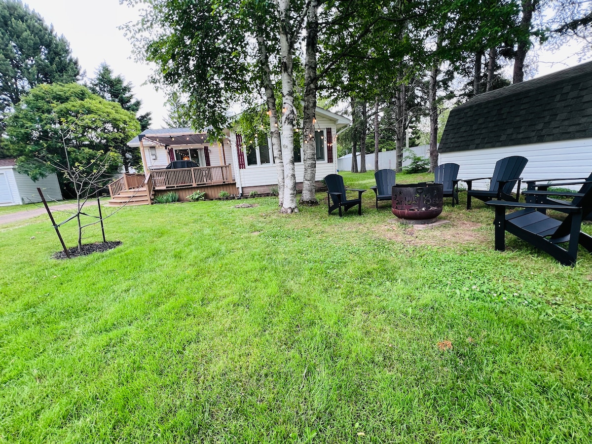 This brand new waterfront listing offers all the modern amenities and breathtaking views that will make your next getaway the most memorable yet! Our charming waterfront property is uniquely located on a beautiful peninsula along the Foxriver with hundreds of feet of waterfront access Relax and gaze at the stunning views, Enjoy our firepit, seasonal BBQ and the water front wildlife! Bad weather? No worries! We have high speed internet, Netflix, Washer&Dryer and your own personal Hot tub!!