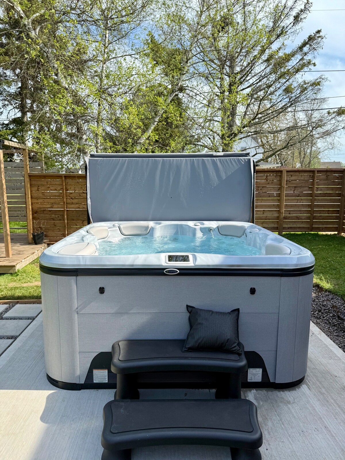 (Français en bas) Kick back and relax in this calm, stylish space. This is a 4 season private oasis. You can enjoy the stars on a clear night sky around the fire pit or in the comforting warmth of the spa. The large deck offers plenty of space for your workout session or your grilling skills! The gazebo is a great place to sip your morning coffee or glass of wine. Walking distance to a tranquil beach and conveniently located near the beaches of Parlee (Shediac) and Aboiteau (Cap-Pelé).