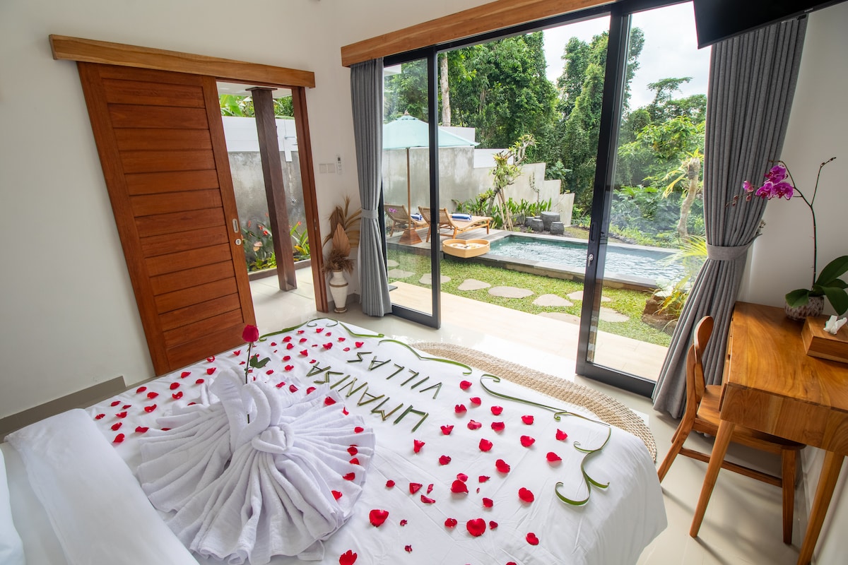 Villa Shamballa is a spiritual and tranquil haven that offers an intimate and indulgent private villa experience. This romantic hideaway magically perched atop a ravine along the mystic Wos River is the ideal location for a couple especially for their honeymoon and anniversary and birthday. "Special Offer for honeymoon and Birthday (same month of your stay) or over 5 nights- Booking by 31 Dec '25 Complimentary 3 course pool side romantic candlelit dinner - minimum "3 nights" stay only