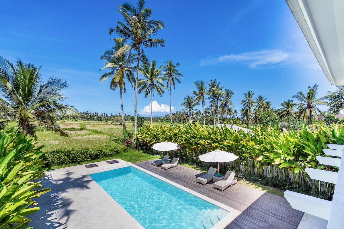 Escape to a quiet, fully private 200sqm entire villa surrounded by rice fields 🌾, near Keramas Beach, Ubud & Sidemen in East Bali. Ideal for couples, solo travellers & remote workers seeking privacy, comfort in a slower pace. Enjoy a private pool, rooftop & power-connected Wi-Fi, with a peaceful calm atmosphere and both sunrise & sunset light. Perfect for long stays & slow travel, easy access to explore Bali’s nature, waterfalls, mountain & scenic countryside, far from crowds & mass tourism.