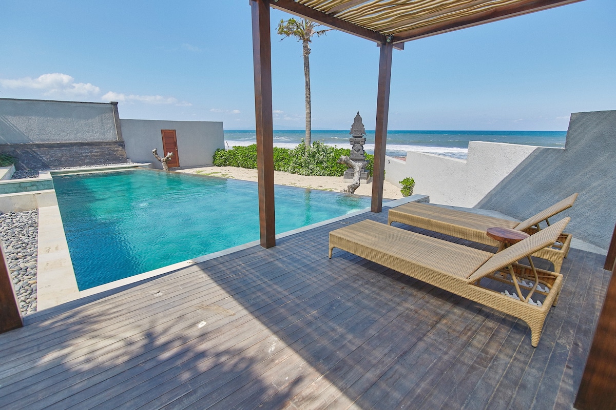 🍃Free Benefit🍃 Enjoy free airport pick-up or drop-off for a minimum stay of 7 nights, and 1-hour complimentary sauna access for bookings of 6 nights or more. Fulfill with the infinite ocean view accompanied by a calming wave sound in your private sanctuary. The villa is part of a secured 6 villa complex Ketewel Beach Villas & Spa, located east of Sanur and famous for its unforgettable sunrises, the black soft volcanic sand, and a comfortable pavement for jogging or sunset walks.