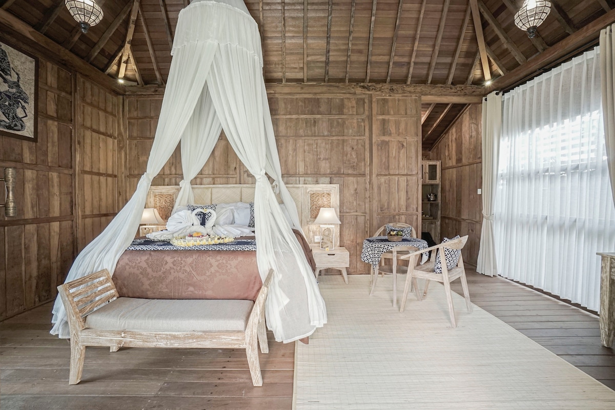 Joglo带泳池、空调、55英寸智能电视和水疗中心
