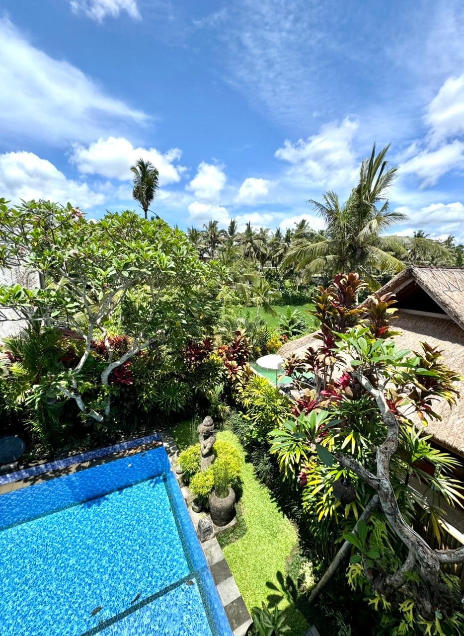 Escape to your own private jungle villa with pool, a secluded sanctuary where luxury meets nature. The Love Ashram is a romantic retreat for deep relaxation & connection. Surrounded by lush greenery, enjoy privacy, jungle views, & a peaceful atmosphere-ideal for couples, honeymoons, & nature lovers seeking a serene escape in Ubud. As part of the living landscape, the rice fields surrounding the villa move through natural cycles—seeded, growing, & harvested—so views may vary throughout the year.
